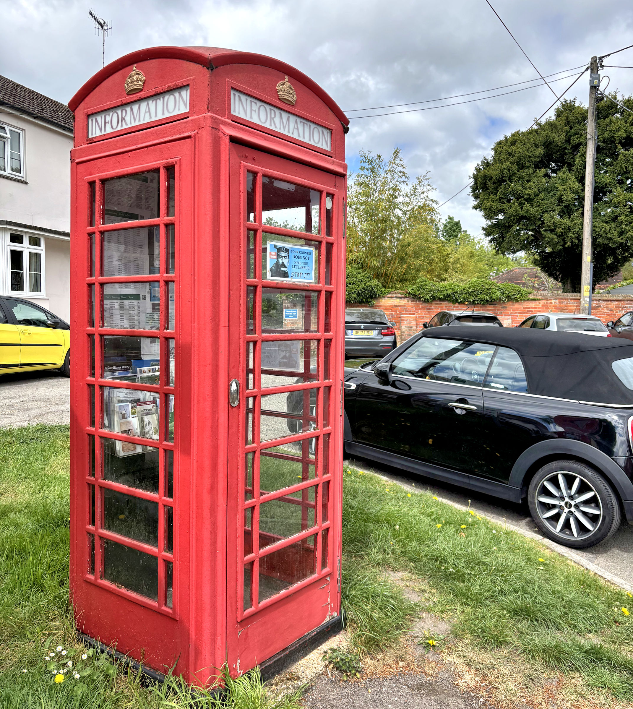 At Upavon we took a short break. We stumbled across the Upavon Tourist Information kiosk in the form of a re-purposed phone box. I found nice bathrooms/toilet in The Antelope. The cellars there apparently date to the early 1300s, and the Inn itself was built in 1604. Across the street was a beautiful place called The Ship, with thatched roof and a stone church behind it.