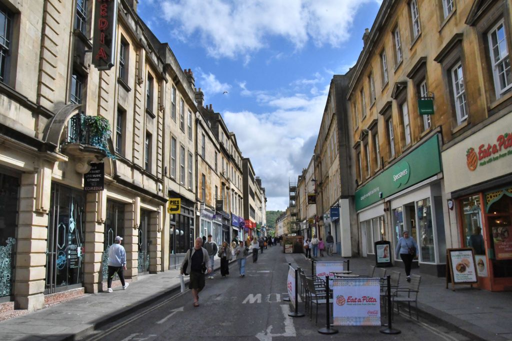 The city of Bath in Somerset, England has much for visitors to see and learn about. It is famous for the Roman baths, of course, and I will talk about that in my next post. In this post, I want to show the sights from the city streets. We had come from rural areas and quaint villages, and it was a new adventure for our senses to explore a modern, bustling city.