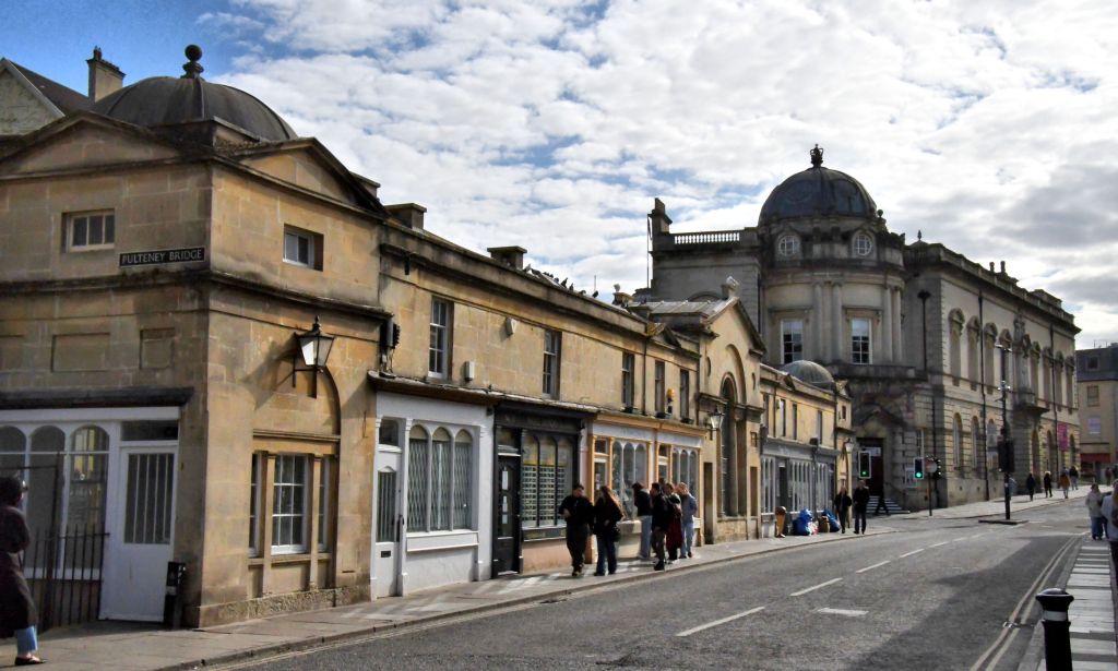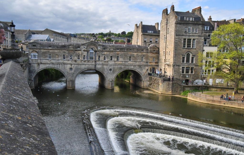 Completed in 1774 to connect Bath with the new suburb of Bathwick across the River Avon, Pulteney Bridge brings images of Tuscany to Bath. The design is inspired by the Ponte Vecchio in Florence and the bridge itself is lined by shops. It is one of only four such structures in the world. Viewed from where we stood, the bridge’s elegant arches are set off by the curved cascades of the weir (low dam built to regulate water) just downstream.