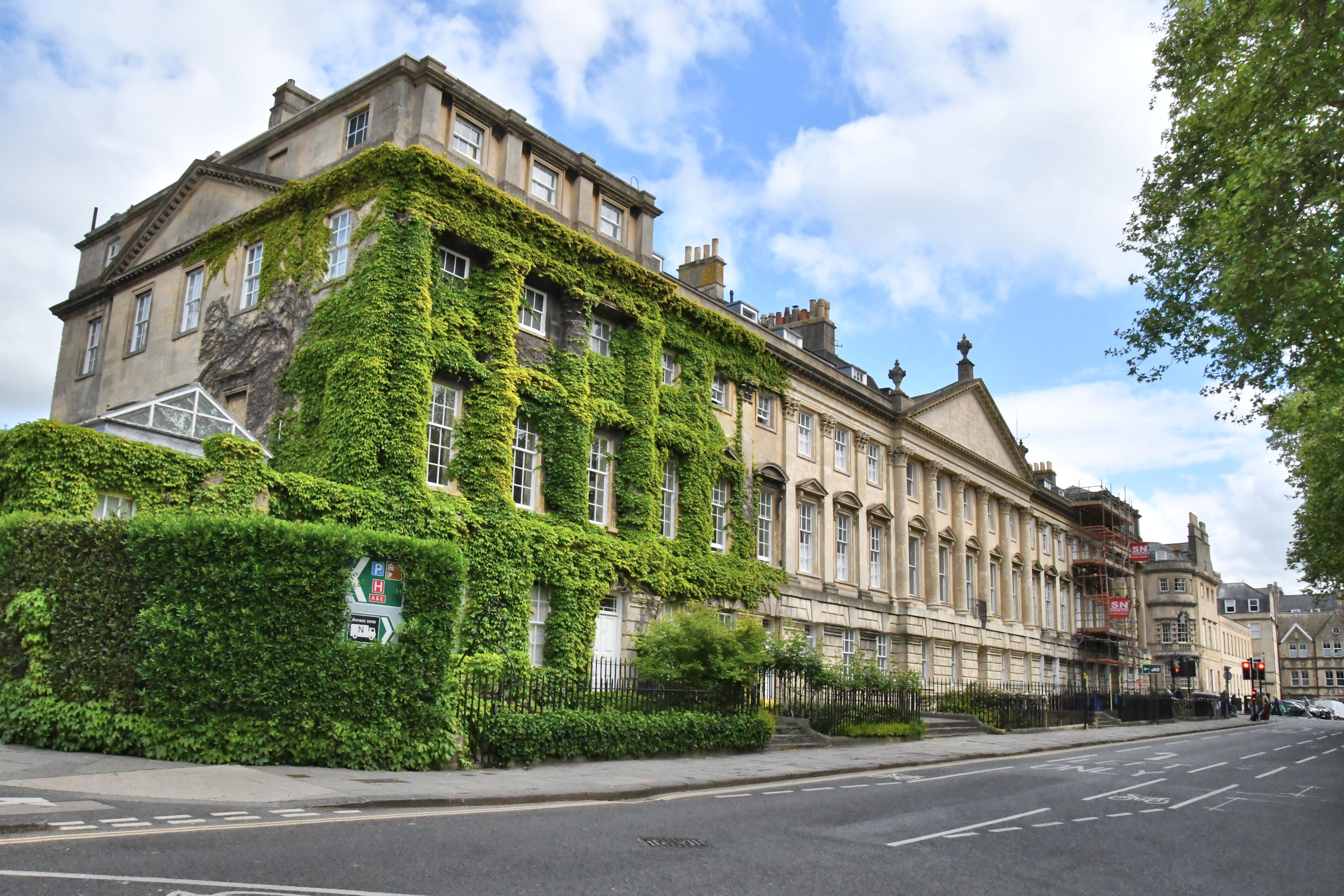It was an easy walk from there to the adjacent Royal Crescent, designed and built by John Wood the Younger. Even at the end of a long day of being impressed by architecture, The Royal Crescent still elicited exhales of admiration. Unlike The Circle with its magnificent trees in the center, blocking views of the buildings, here we saw a sweeping arc of stunning Georgian stone townhouses hugging an expansive green lawn.
