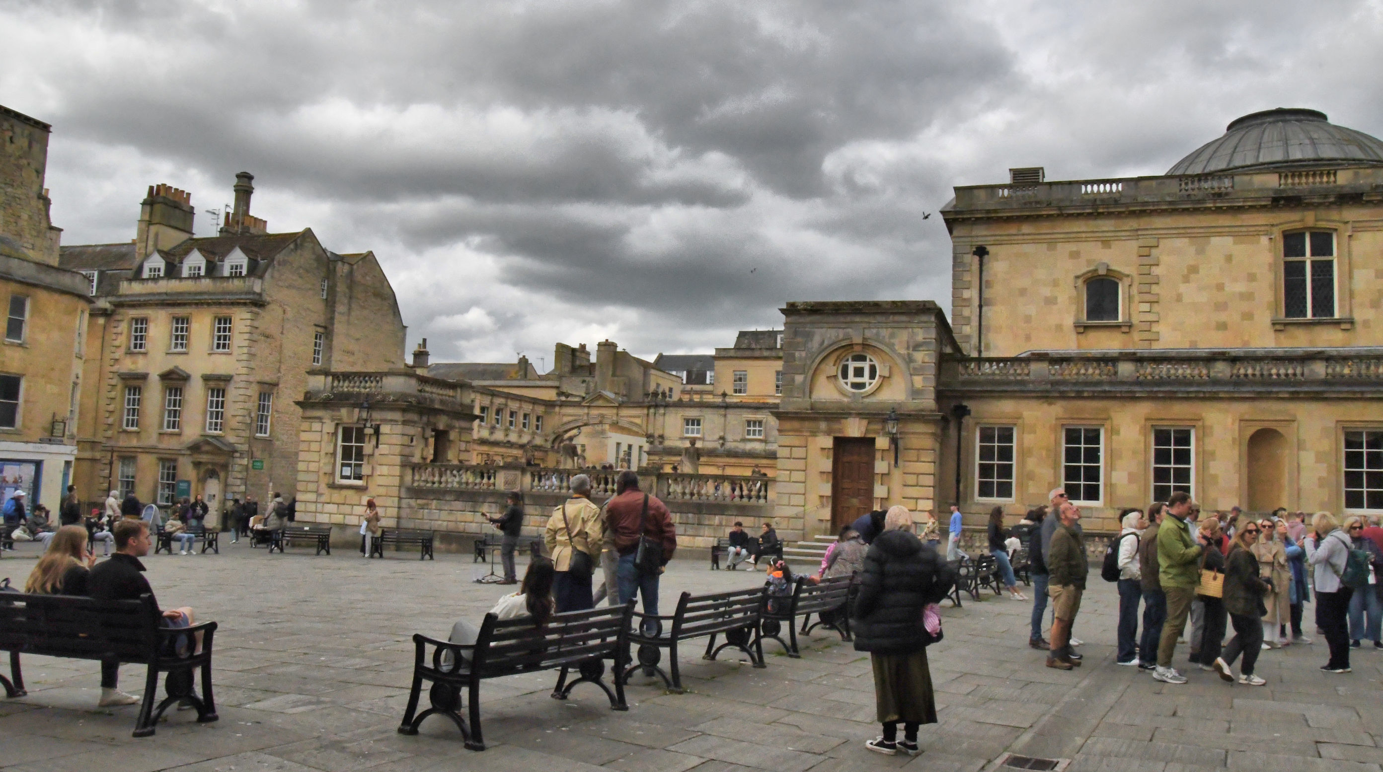 Our car park was ony a few minutes’ walk from our hotel, where we were easily able to check in at 11:00 am. We left our bags and went directly back into the streets again to wander around and get our bearings before it was time to get in line for the Roman Baths Tour.