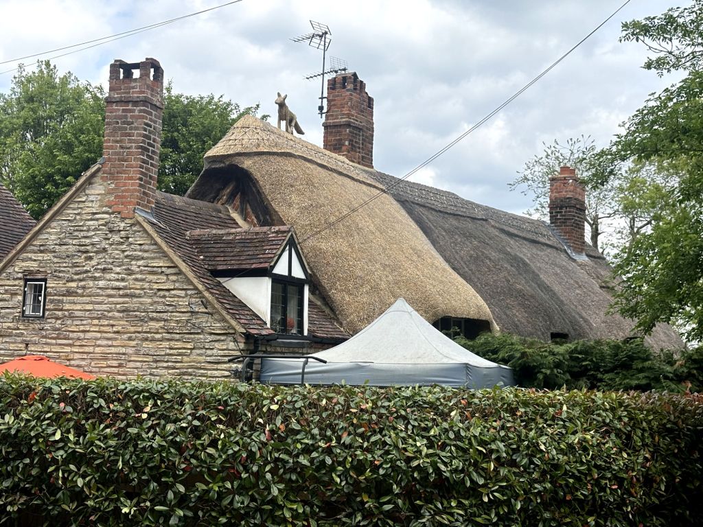 On the way out of there, Andrew graciously stopped for me to acquire two more thatch photos, on a cottage very close the the Hathaway Cottage.