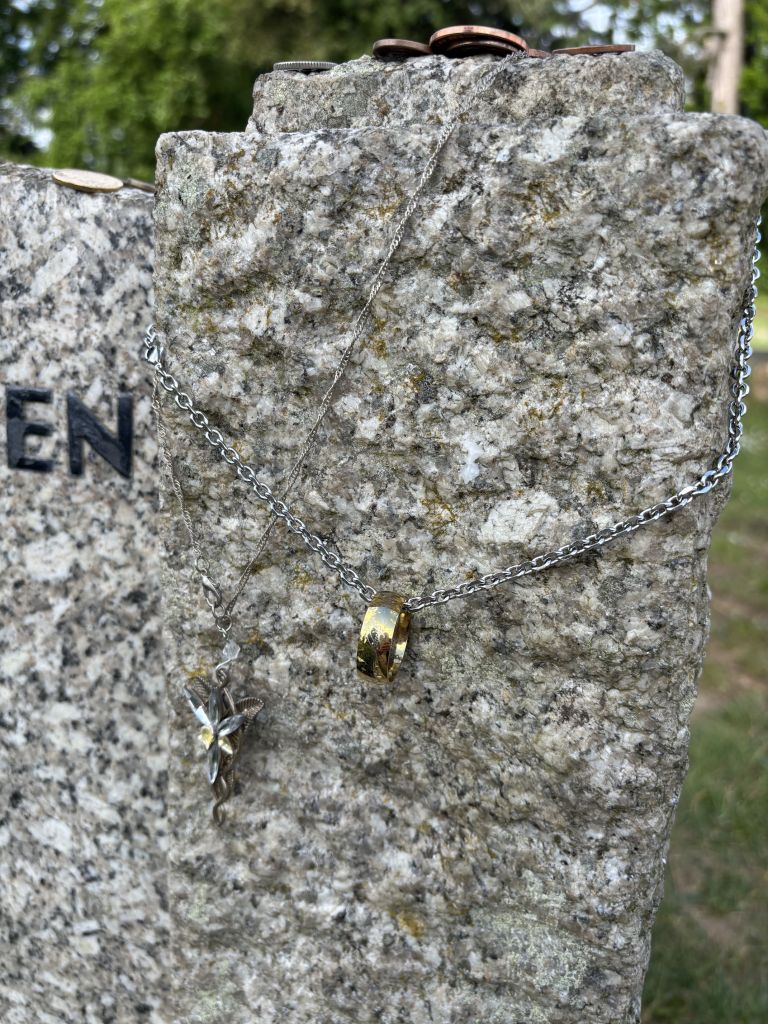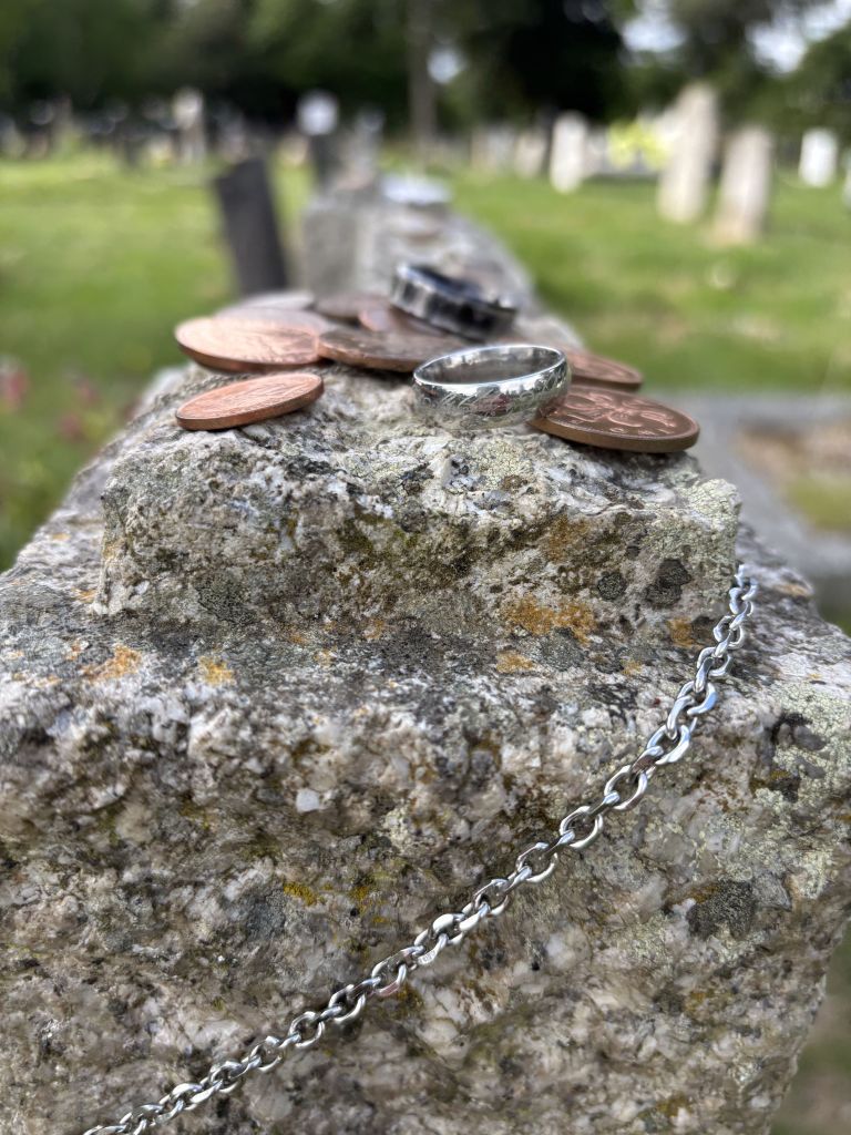 I was really touched by the amount of personal notes left at the gravesite. So many messages of thanks, and stories of how Tolkien inspired people, how his books brought them back from the brink. There was one 2-paged impassioned letter, begging the author for help in our troubled world today, when people are hurting each other and the Earth. There were many tiny gifts, to include the ones I showed in photos, and also drawings and photos and plastic animals and a bottle of oil?