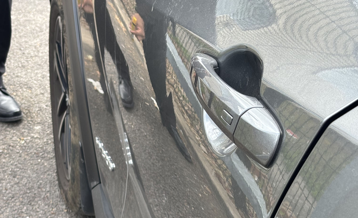 Yeah, it took the guy a full five minutes to explain to me how to find the dent, which is practically imperceptible. I made him stand where he is in the photo above, so I could get a reflection of a jagged pant leg, in order to show the “dent.” In the US, that would have been ignored by a rental agency. I’ve seen actual scratches, a cigarette burn, and missing paint ignored on a rented car in the US. I asked for him to bring out his supervisor to confirm that this level of “damage” will require a repair. Yes, Yes it will.