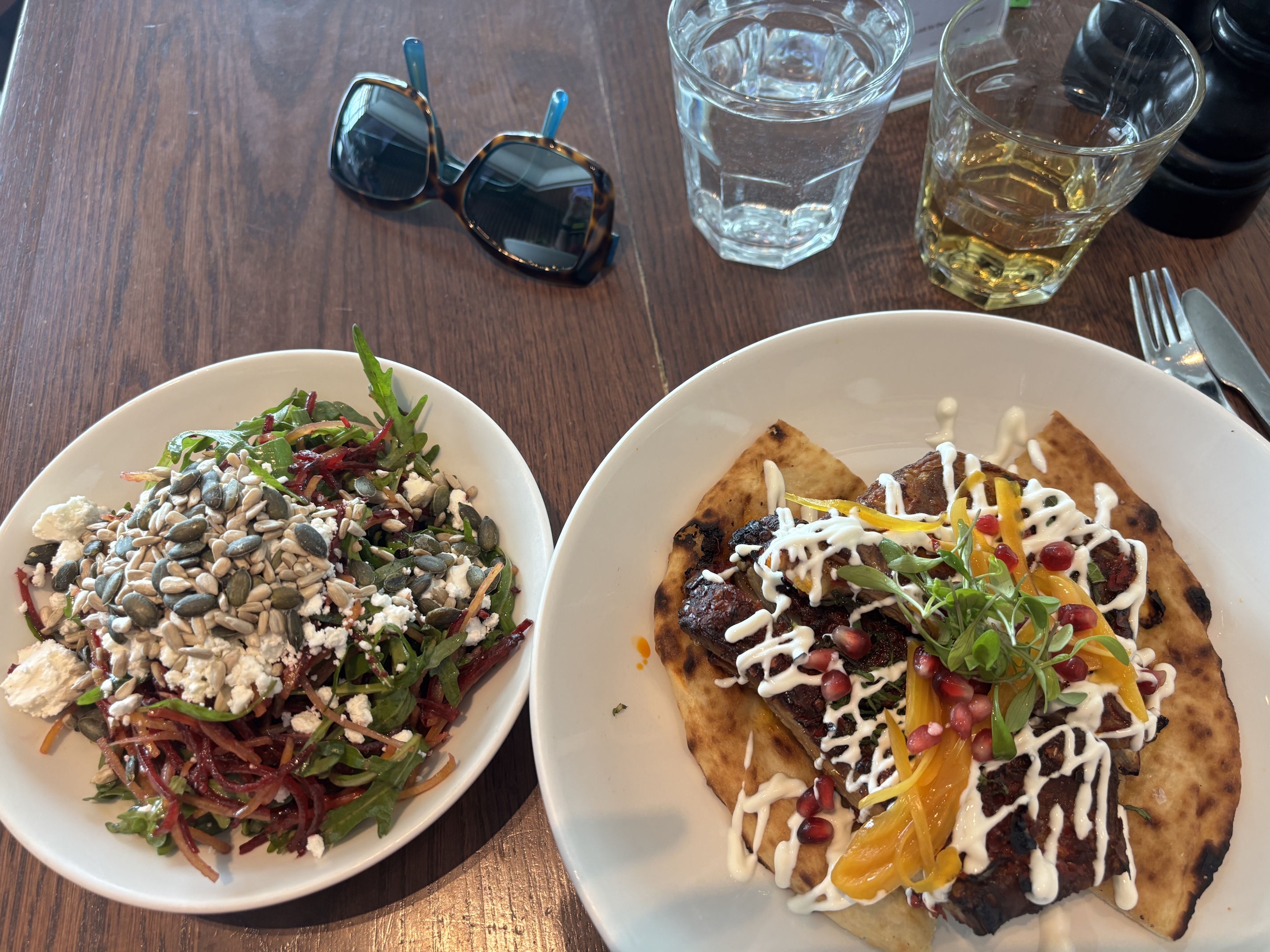 I had 3 1/2 hours till my flight, so I went to Gordon Ramsay’s restaurant Plane Food, and ordered something to make up for our gas station meal in the morning. It was expensive, but delicious. Before the food came, I ordered an expensive scotch to celebrate a successful journey and return to my beloved Pedro. I ordered a double, neat.