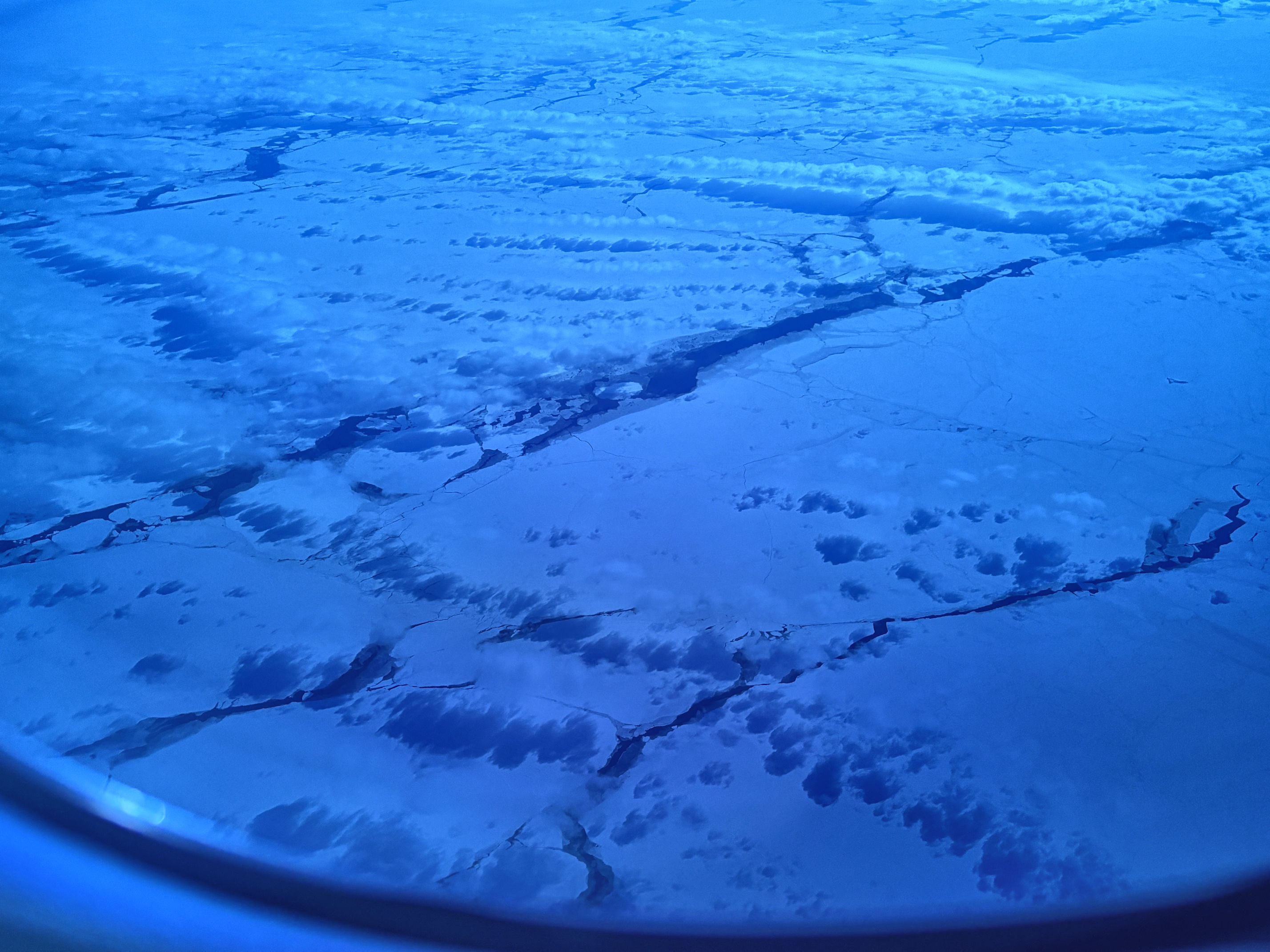 The trip home was over the north pole and since I was chasing daylight, I was able to see below me the entire time. I was fully fascinated with the ice.