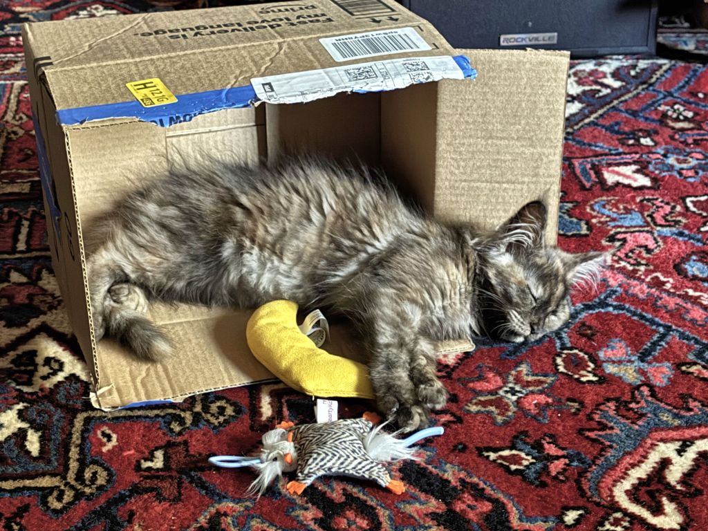 She is quite pretty. It’s good to see you have a good cardboard box supply 😹