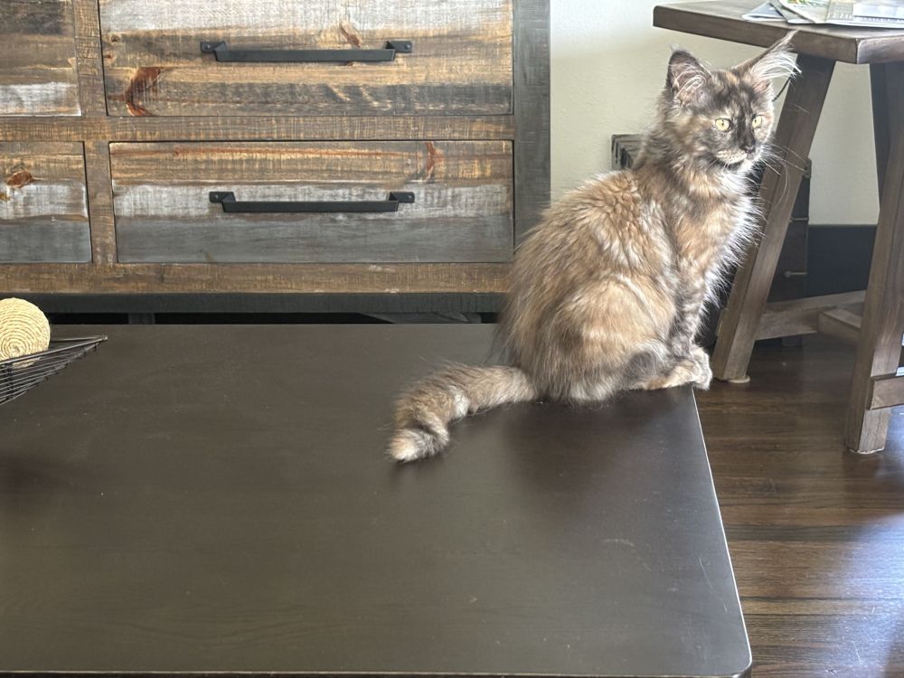 We went this route because we really wanted a Maine Coon, and they are popular so it’s hard to find them at shelters. I tried, and many that were listed as Maine Coons or mixed Maine Coons were not. Getting a bred cat means we got to see photos of her parents: