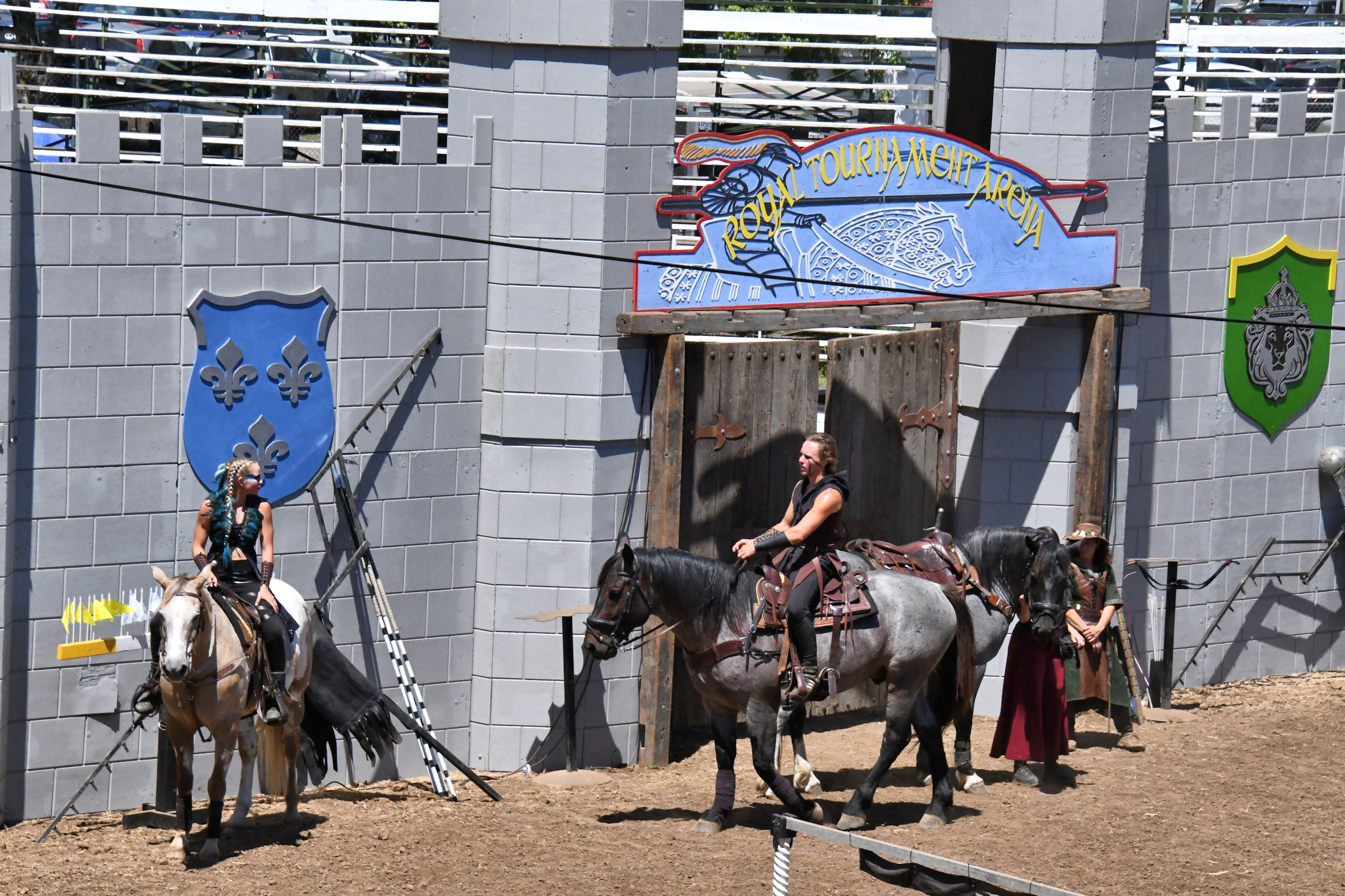 The arena was mostly for the adults, and it was amazing! I was so astonished that I forgot to take very many photos. I think that’s a good thing. They were to have actual jousting later, but I was not interested in spending more time out there in that blasting heat than was necessary. I felt sorry for the performers who gave no indication that they were suffering.