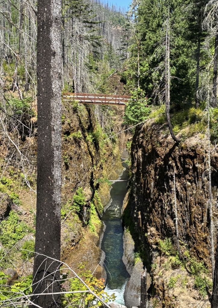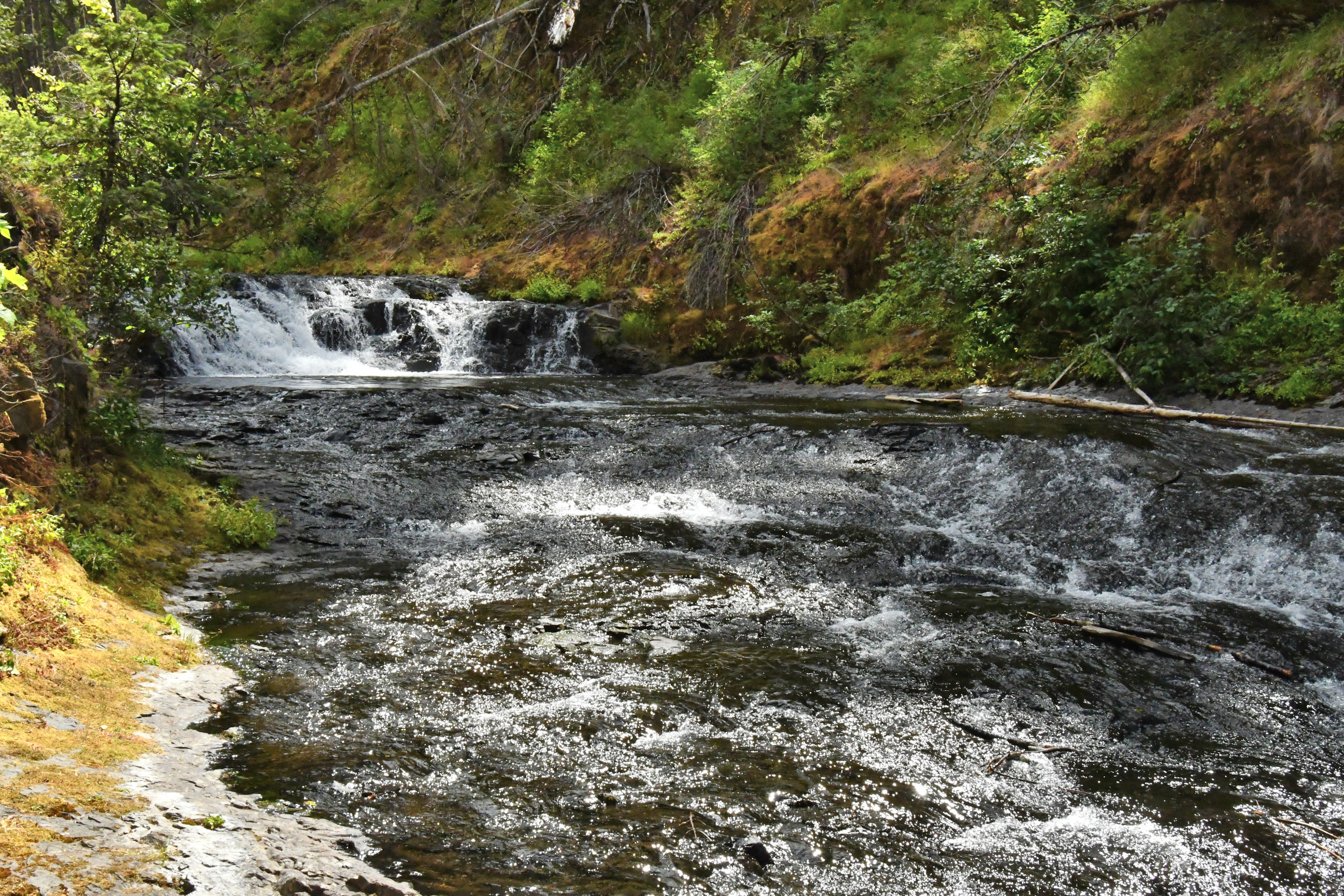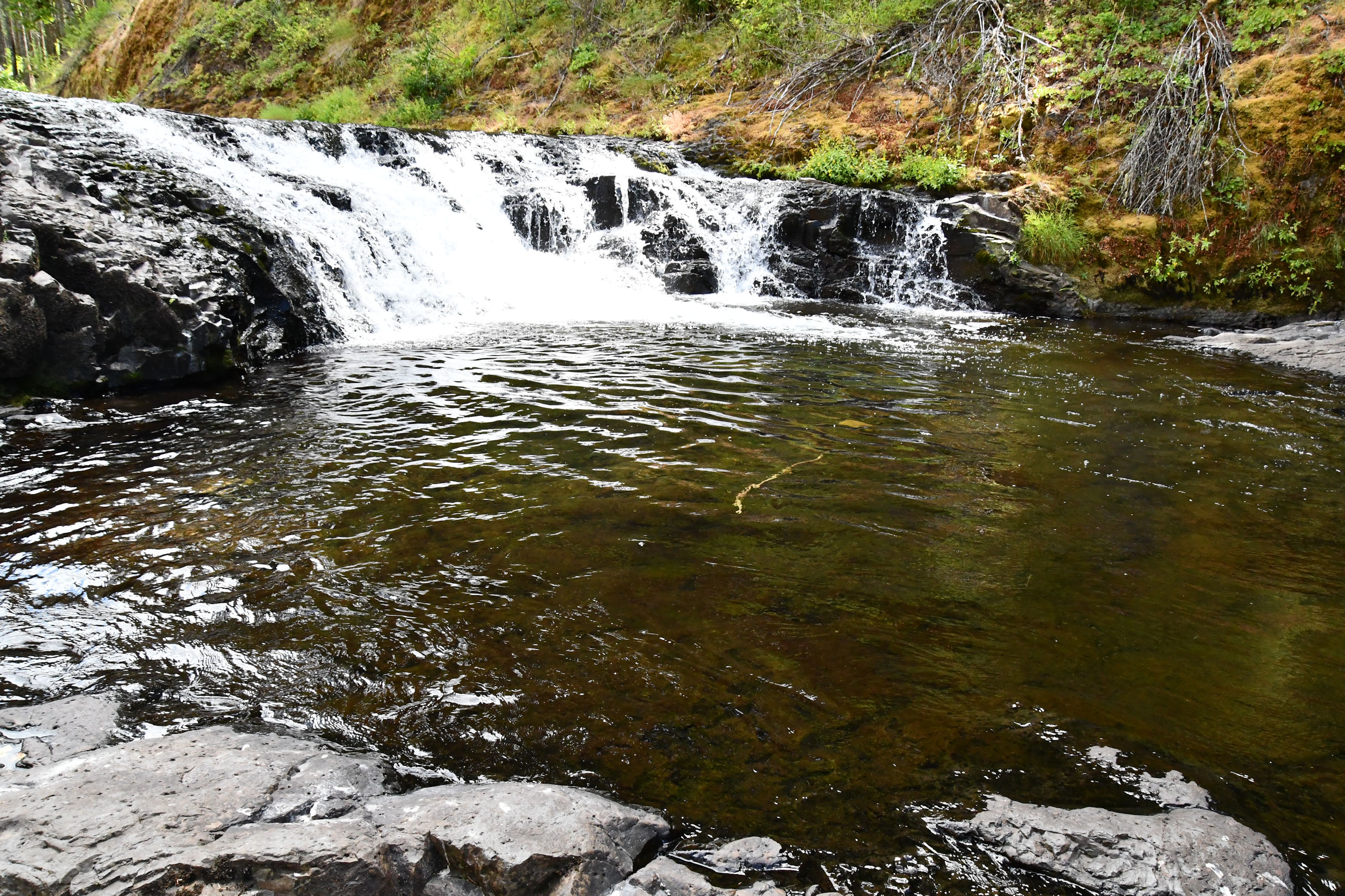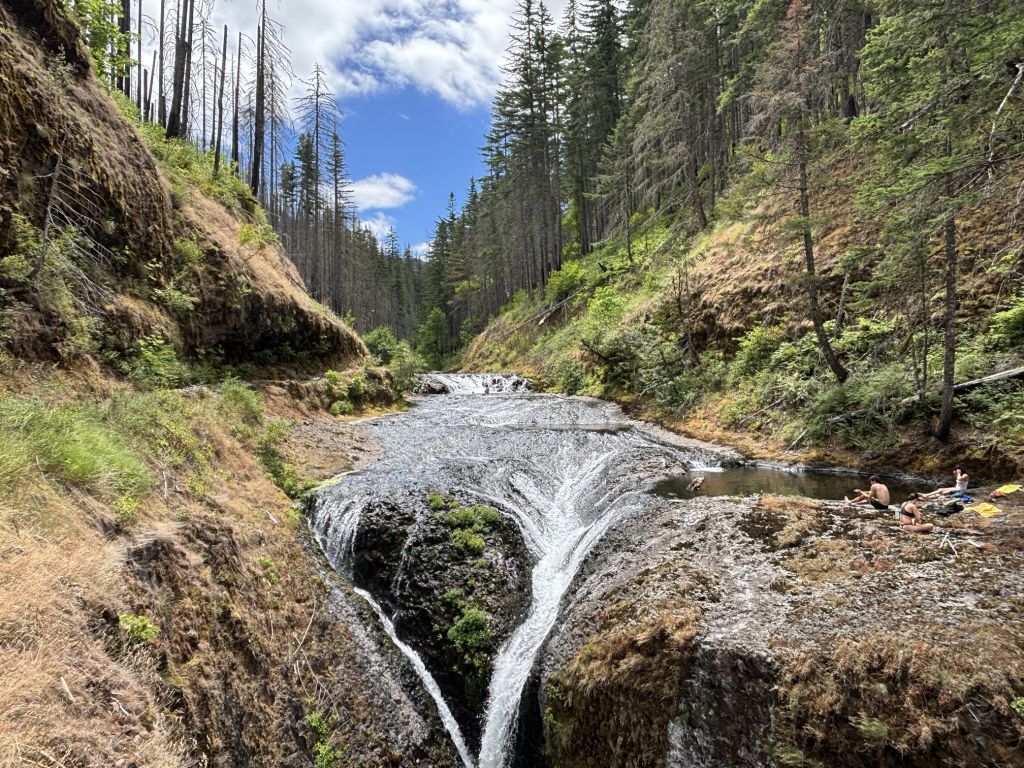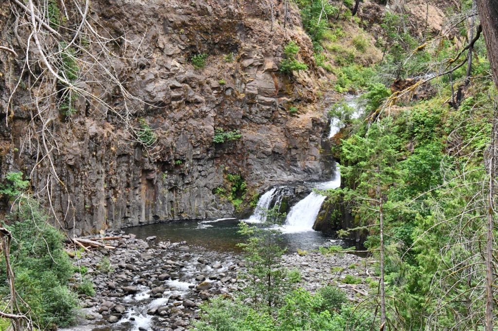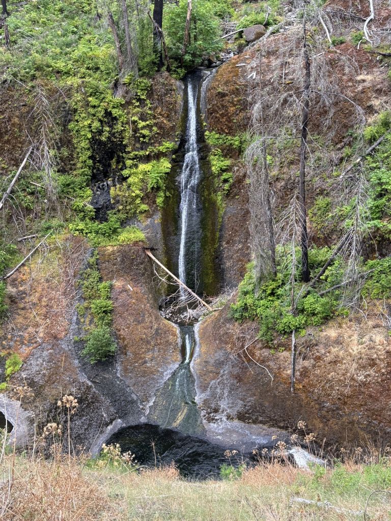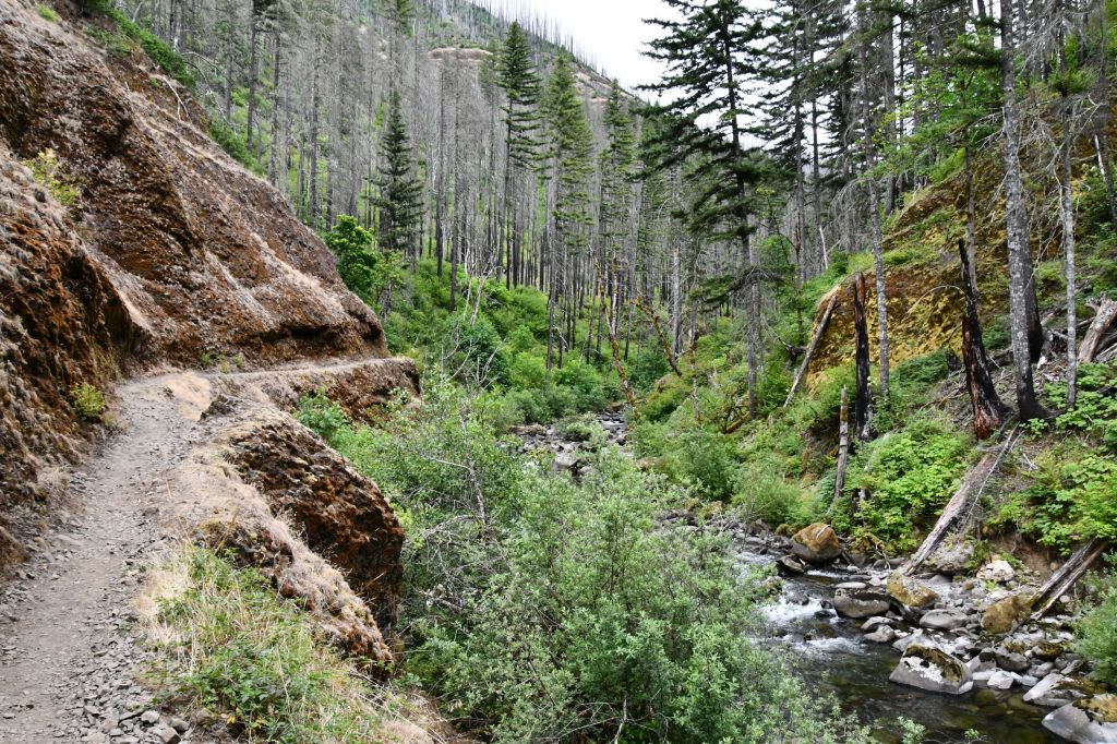 The falls above are along the trail, mostly considered unremarkable, but that is because we live in Oregon and these dramatic falls are freaking everywhere. The one on the bottom right is Metlako Falls, which is a stunning waterfall, but these days one cannot get a very good view of it because of new growth of brush after the fire that didn’t use to be here. In a post from 2015, I have a great photo of Metlako Falls (also you can see what the trail looks like before the fire).