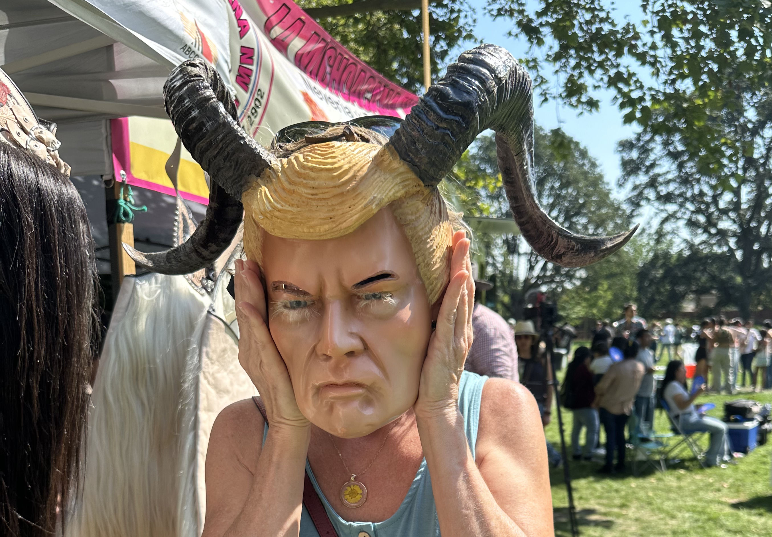 1. Uh, yep. Exactly. He does have horns, but most people can’t see them. I just watched clips from the new episode of South Park where T-rump is in bed with Satan. It made me think of this mask!
