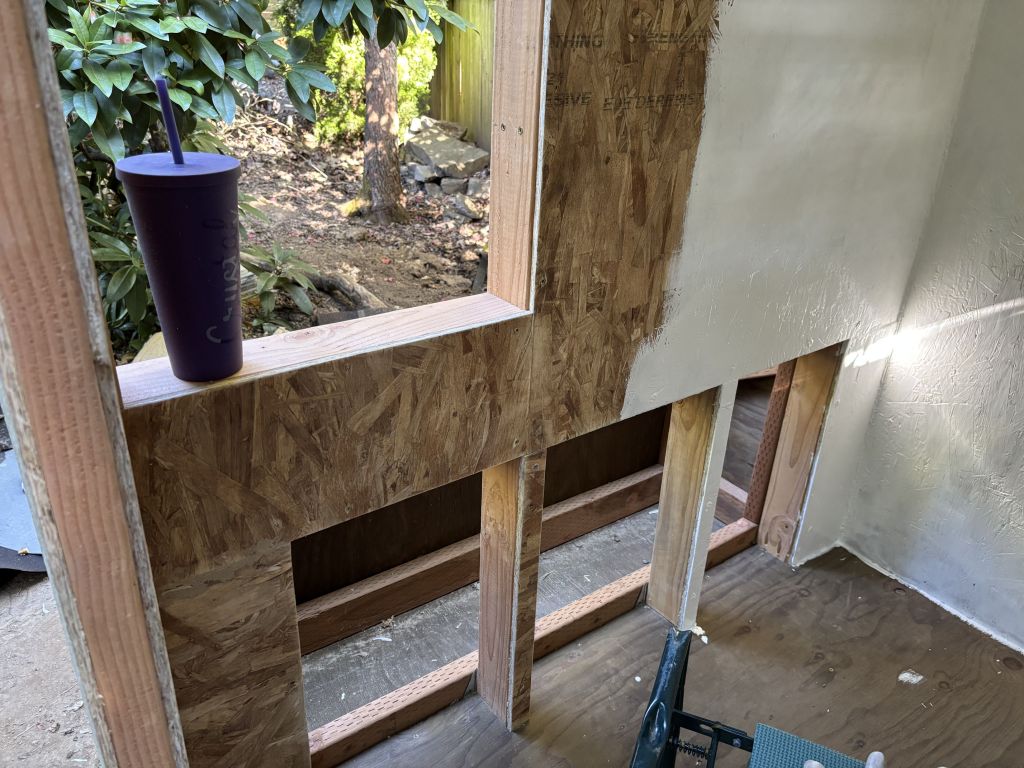 We have visited ReStore (by Habitat for Humanity) so many times, to pick up partially used tubes of glue, boxes of 2 inch wood screws, unwanted paint, trim boards, roofing shingles, excess insulation. Pedro insulated the roof and walls to protect our girls from the weather. I even picked up a metal vent cover and a gorgeous double paned window with a screen and an opening hand crank, for only $18.