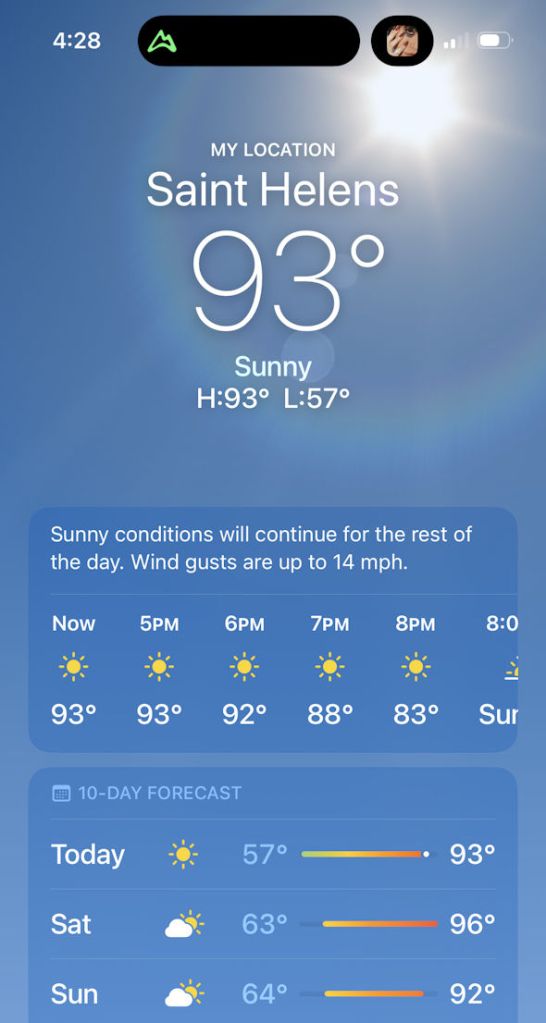 If you note the two 93s above (one at 4:28pm and one at 5:14pm), I included them both to show that while I was racing (I’m the one right after Genevieve) on dusty gravel roads for about an hour and 30 minutes, my phone weather app said it was 93 degrees the whole time. My NOAA app said it was 99 degrees. A teammate checked the weather history the next day, and the source she found said it was 100 degrees. That is just too hot to safely race. So we all told each other to slow down and be easy on ourselves. No one on our team was hurt because of the weather, and I am so relieved.