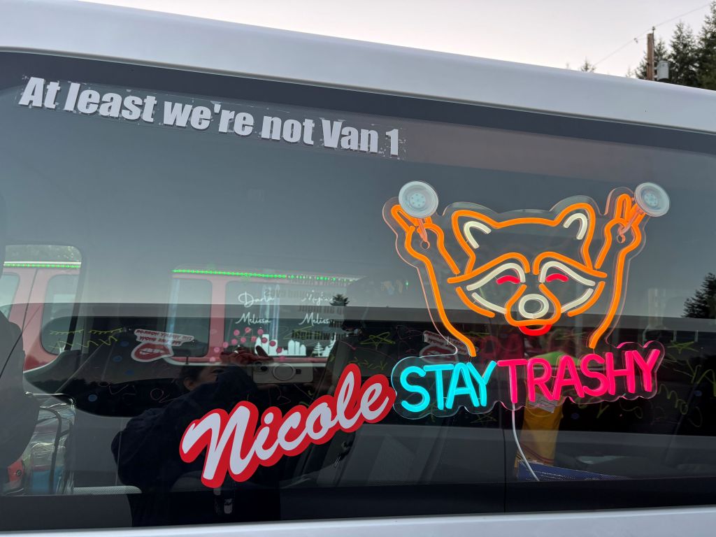 Lading up Van 2 Saturday morning after we woke up, to go find Van 1 and take over again