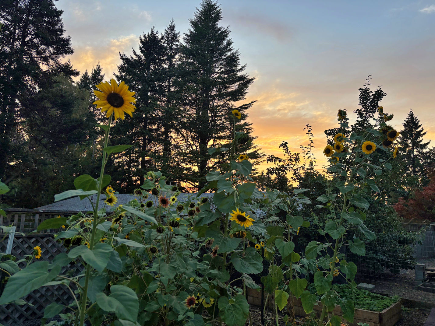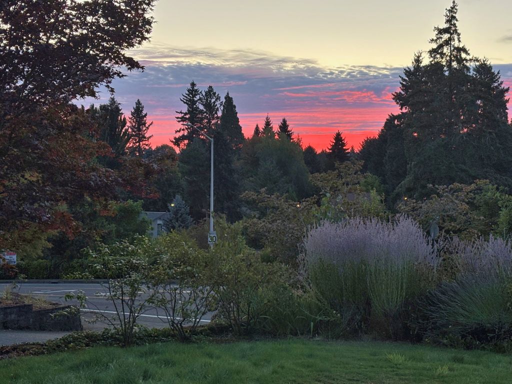 I spotted the scene above from the back yard. I went around later to the front yard, to see the rest of the sunset, because it kept getting redder and purplier.