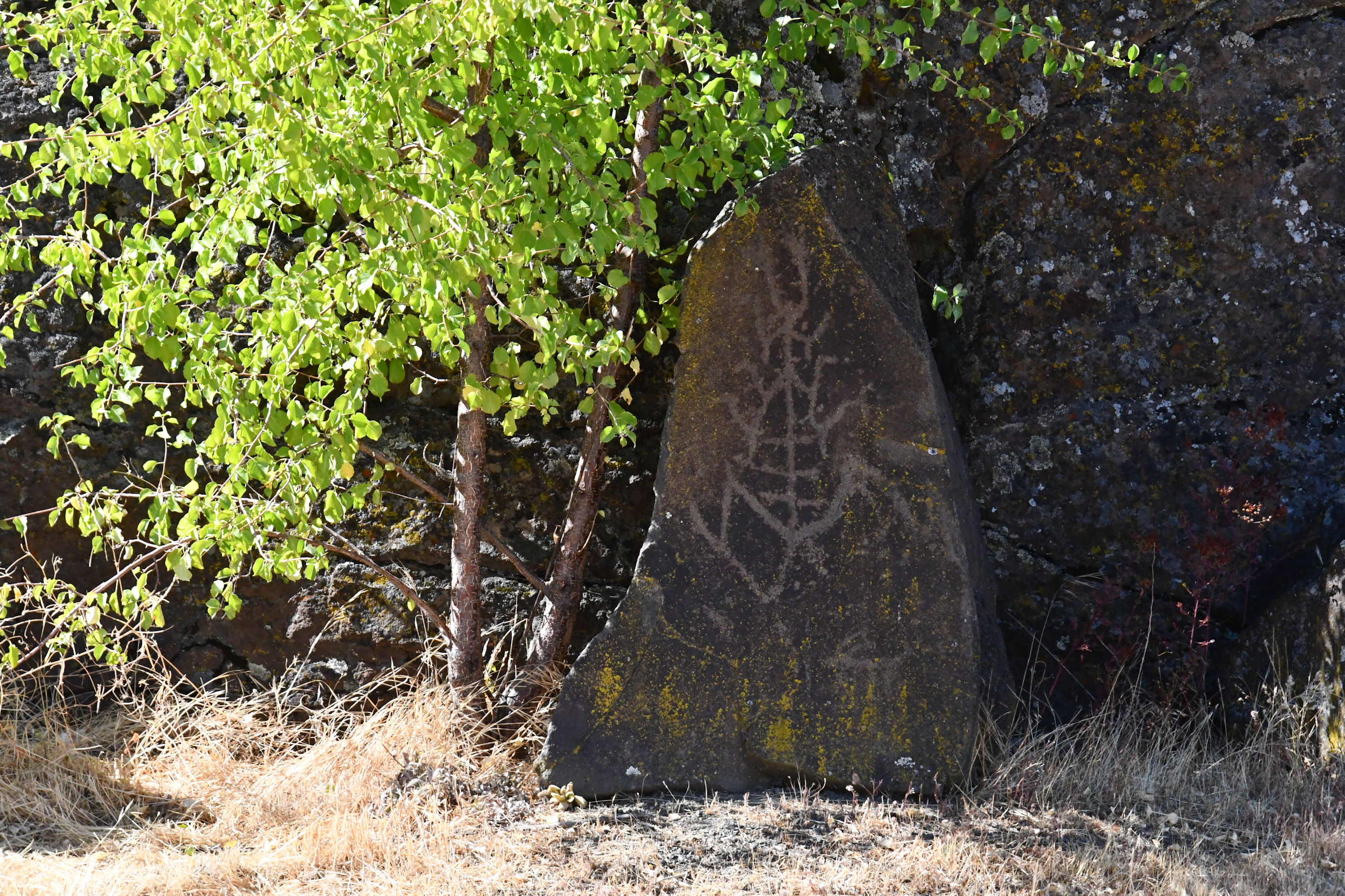 Then we arrived at the basalt walls, and began to spot pictographs. Pictographs are made by applying pigment to a surface – typically a stone surface.