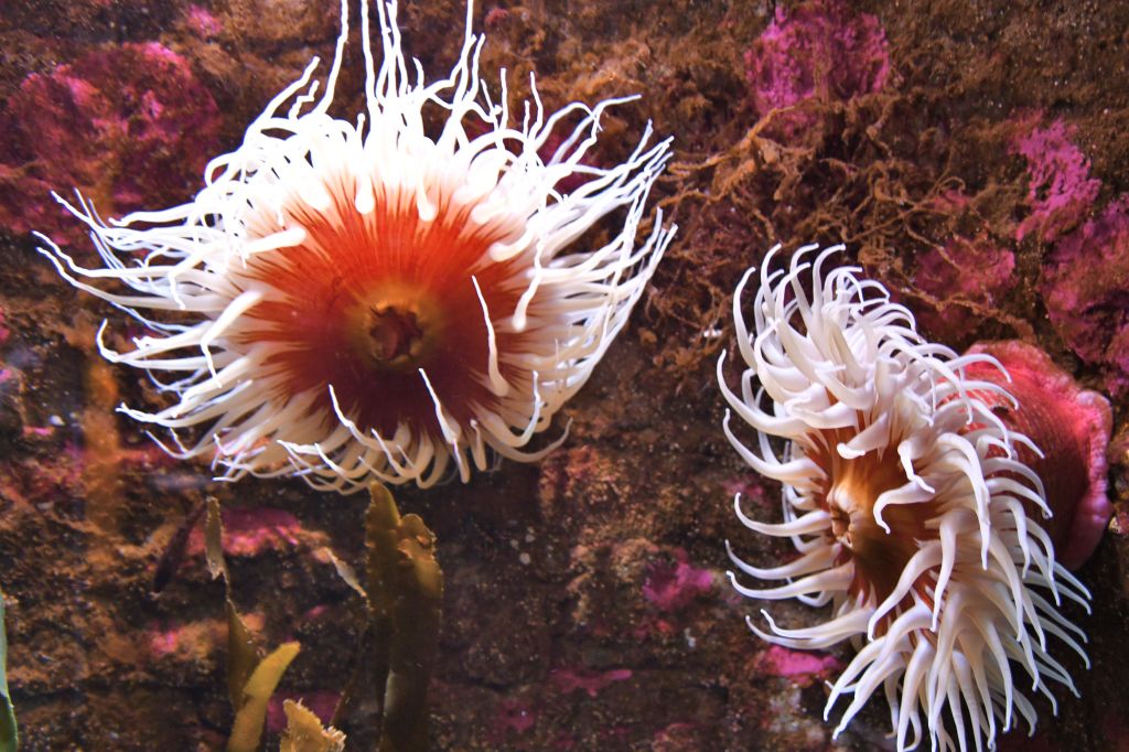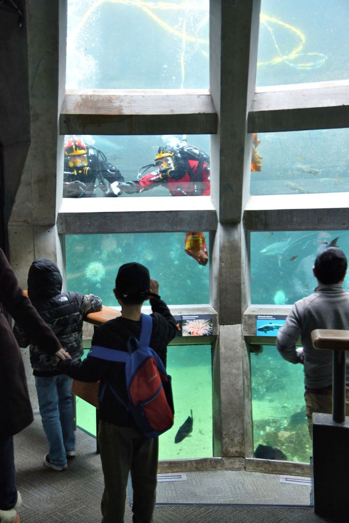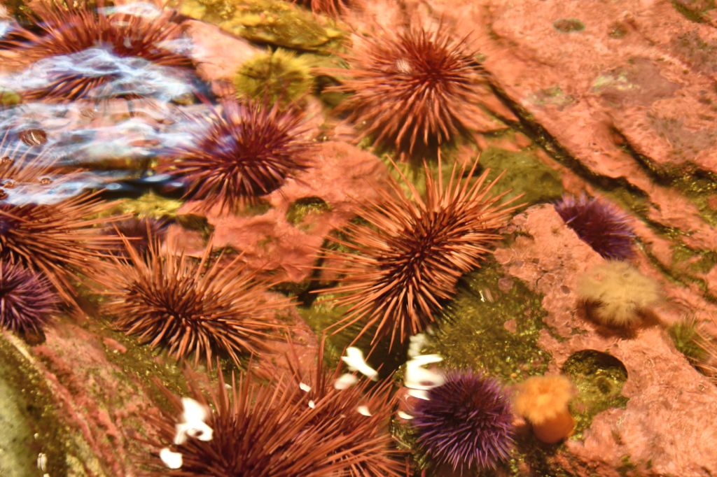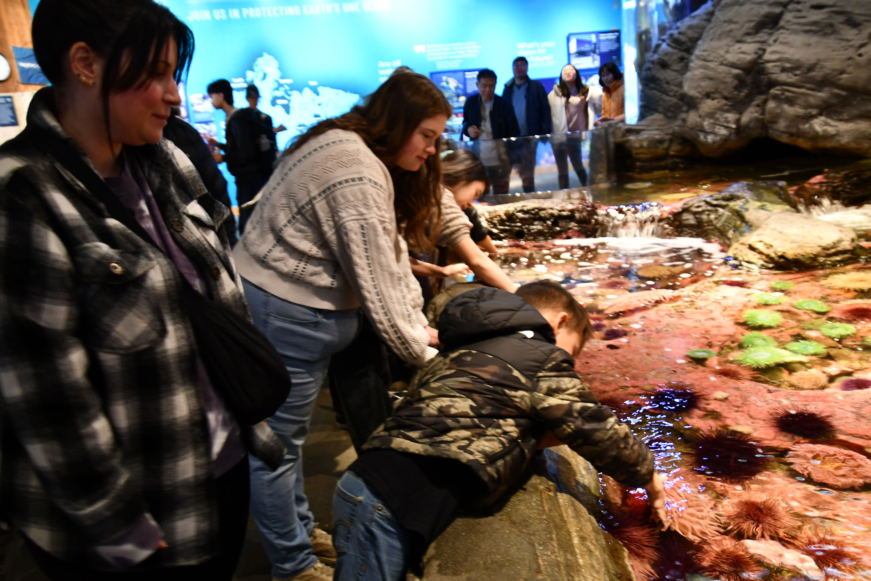 One of the first things visitors see at the aquarium are these tidepools where everyone washes their hands and then can touch the creatures in the pools.