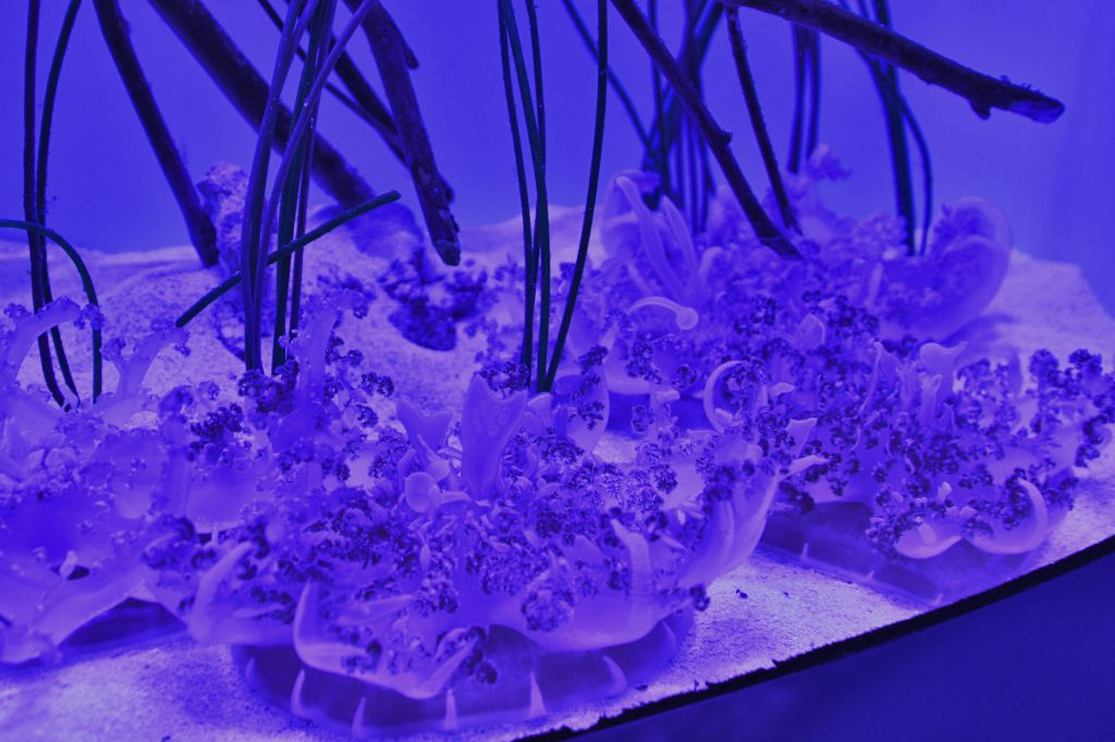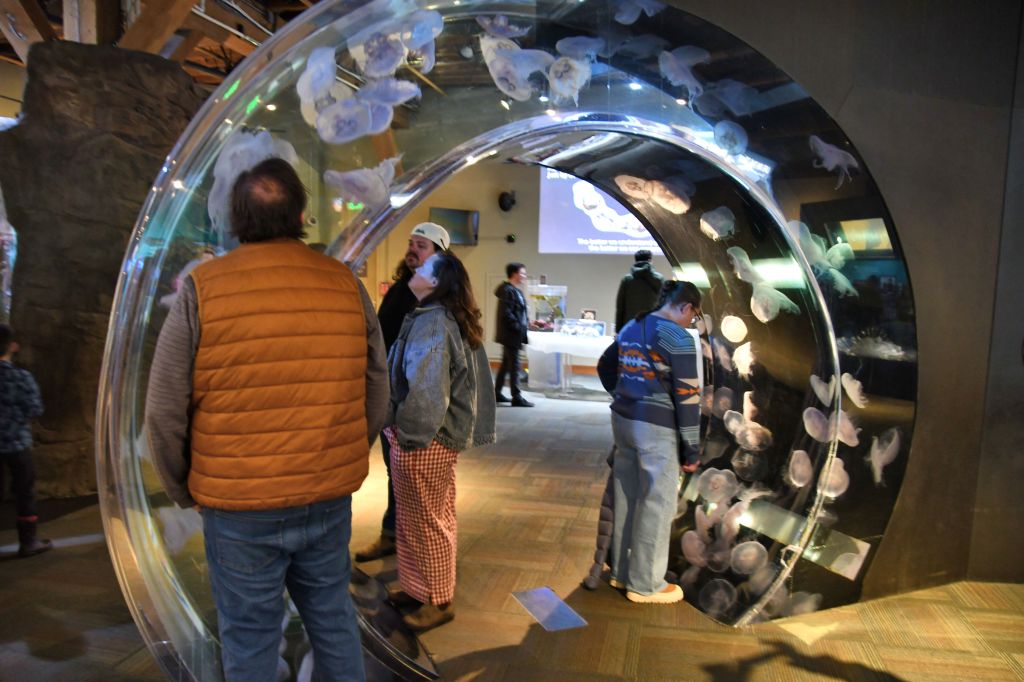 In this wheel-shaped tank, jellyfish swirled in an endless circle and mesmerized humans that stood and watched them go around and around.