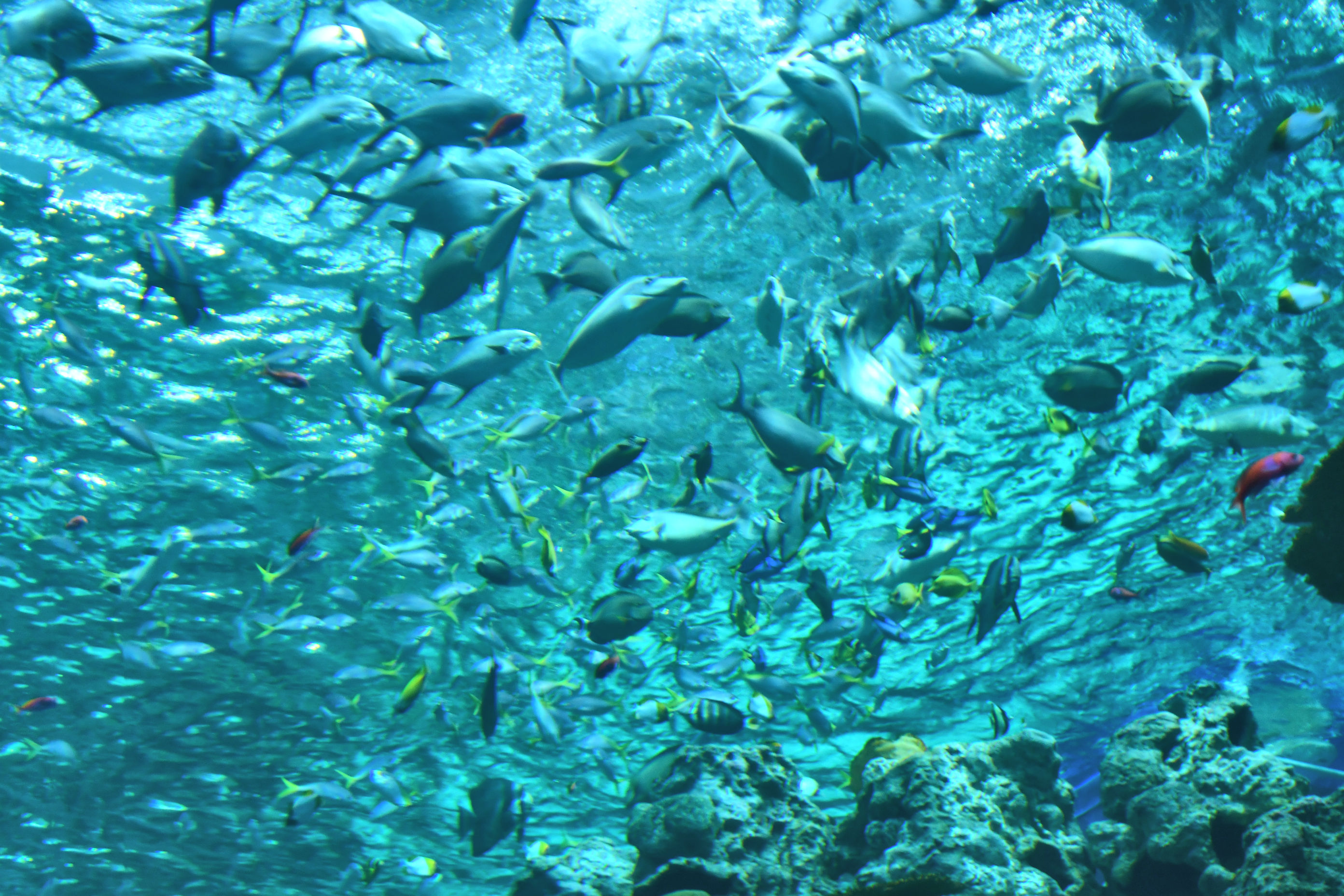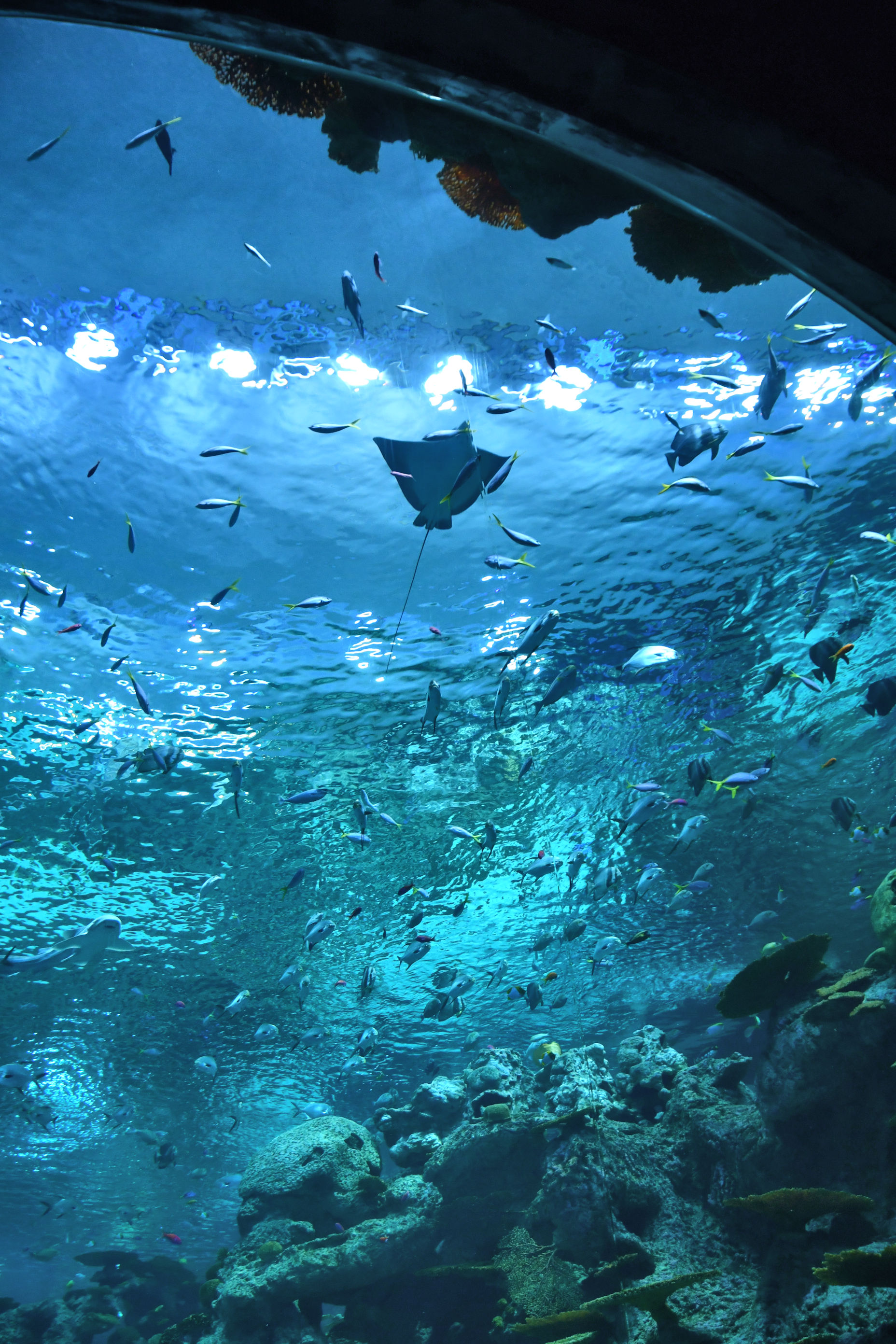 1. Thank you, Lou! That Ocean Pavilion was amazing. I sat on the bench in front of the biggest window, and could have happily sat there for two hours. It’s better than television. I couldn’t believe it had sharks, and rays, and maybe tuna? clustered around the rays and following them closely. Tiny schooling fish, and solo colorful fish that seemed quite busy, poking into the fake reef and looking for bits of something tasty. Then, when we circled the enormous tank, we kept finding entire schools of totally new fish that chose to be in a different place, due to the light, or temperature, or mechanically created water currents in there or something. I was fully fascinated.