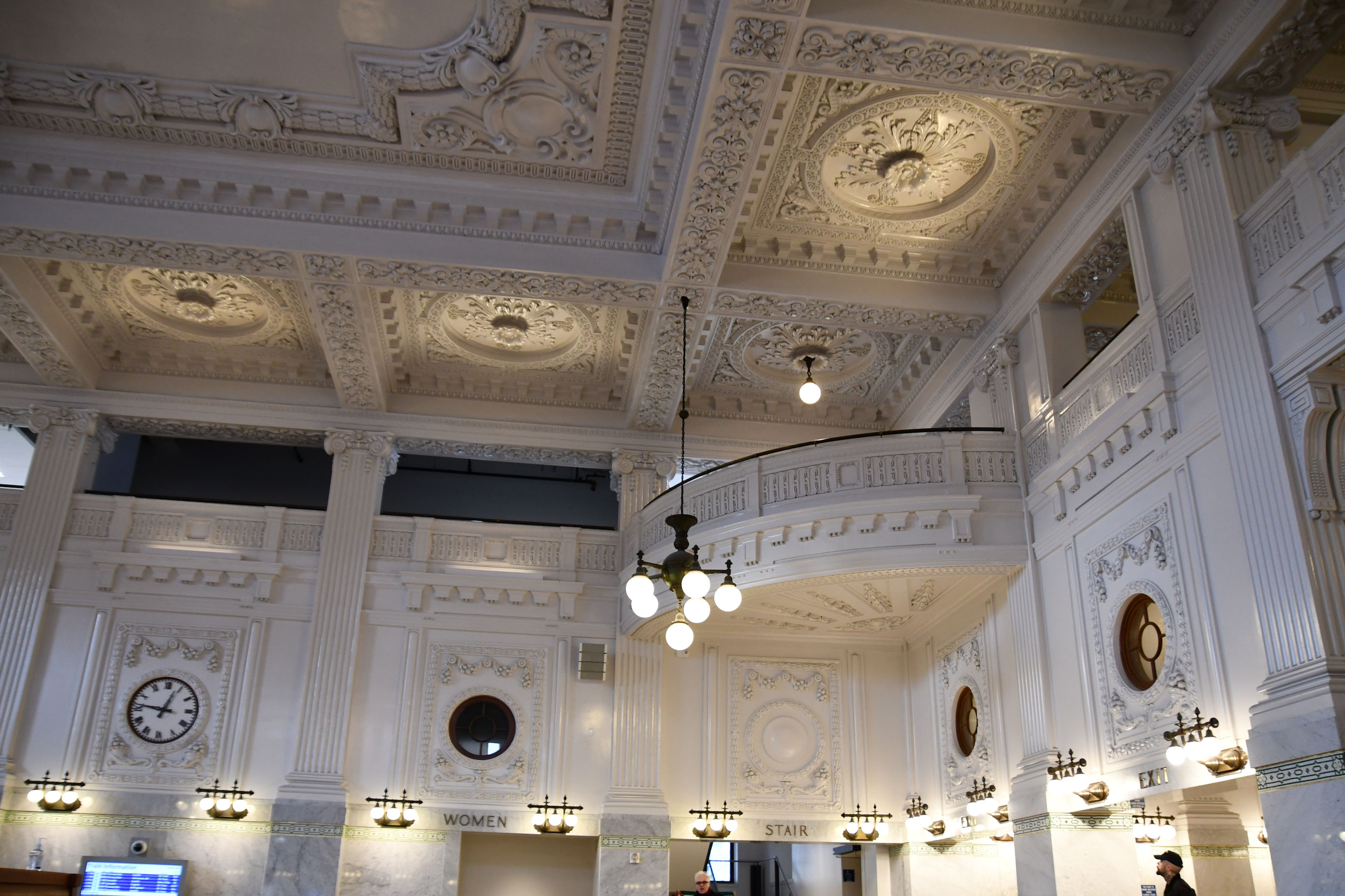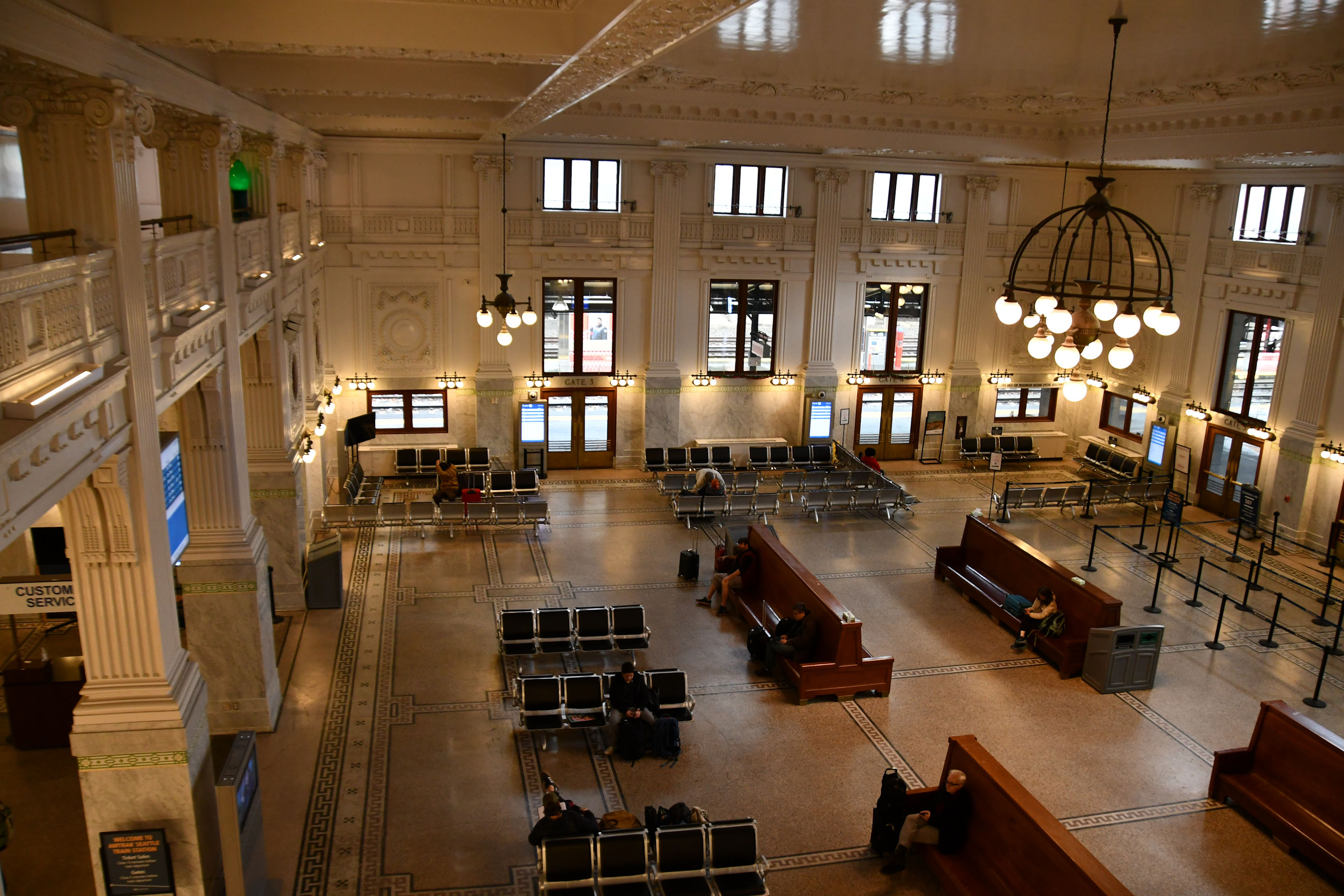 Without anything else to do, we crossed the street to the Amtrak station and found a bench to wait an hour till boarding. Luckily, that was also a beautiful building, which kept me entertained. I found a poster board of historic information on the wall, that informed me that our current train station was opened in 1906.