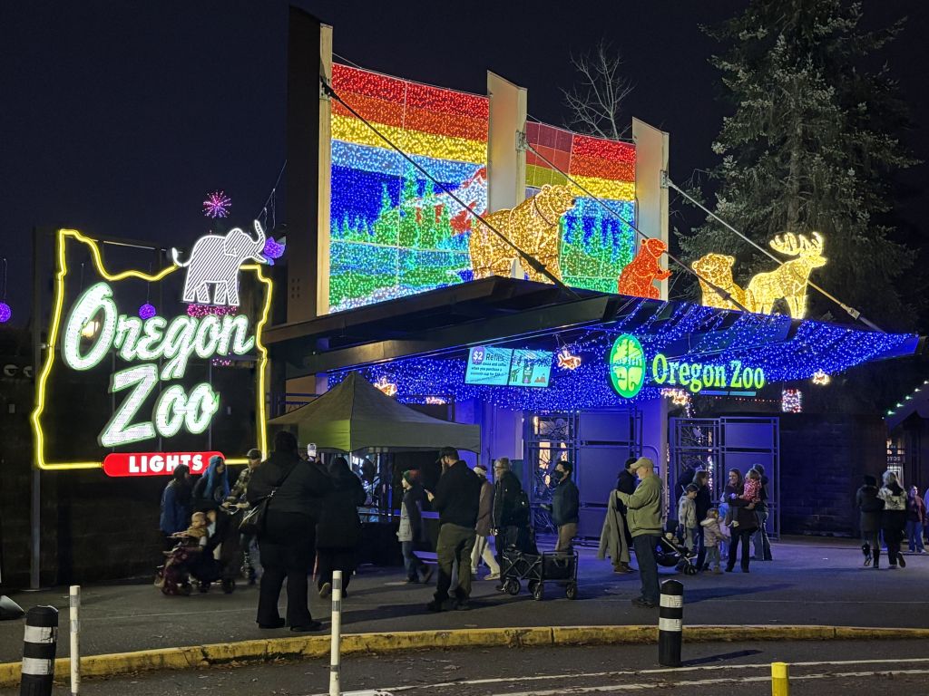 To avoid crowded and costly zoo parking, we parked at the Transit Center and took the MAX train to the zoo stop. Zoo Lights tickets can always be used as MAX tickets, as a way to address congestion.