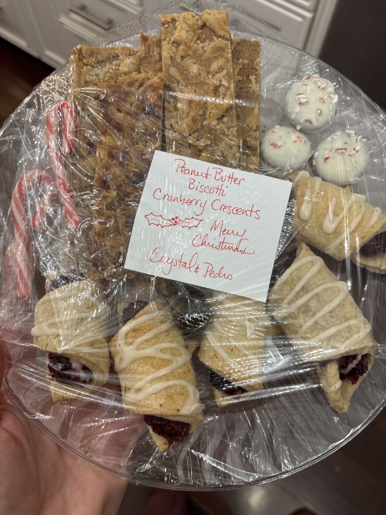 Despite its base being weighted down with several 25 pound weights from our workout area in the garage, our tree was knocked over at least three times, and half the balls have been swatted down the hall and under the couch. But so far, everything has survived. We had a quick visit from Kellen, their fiancΓ© Cameron, and their roommate, Dane, on Christmas Eve. We each opened a single present together, then swapped the rest of the gifts, and plates of goodies, and hugged each other goodbye. Our Christmas was late because we waited for Pedro’s kids to share the holiday with their mom first before they came to our house for the weekend.