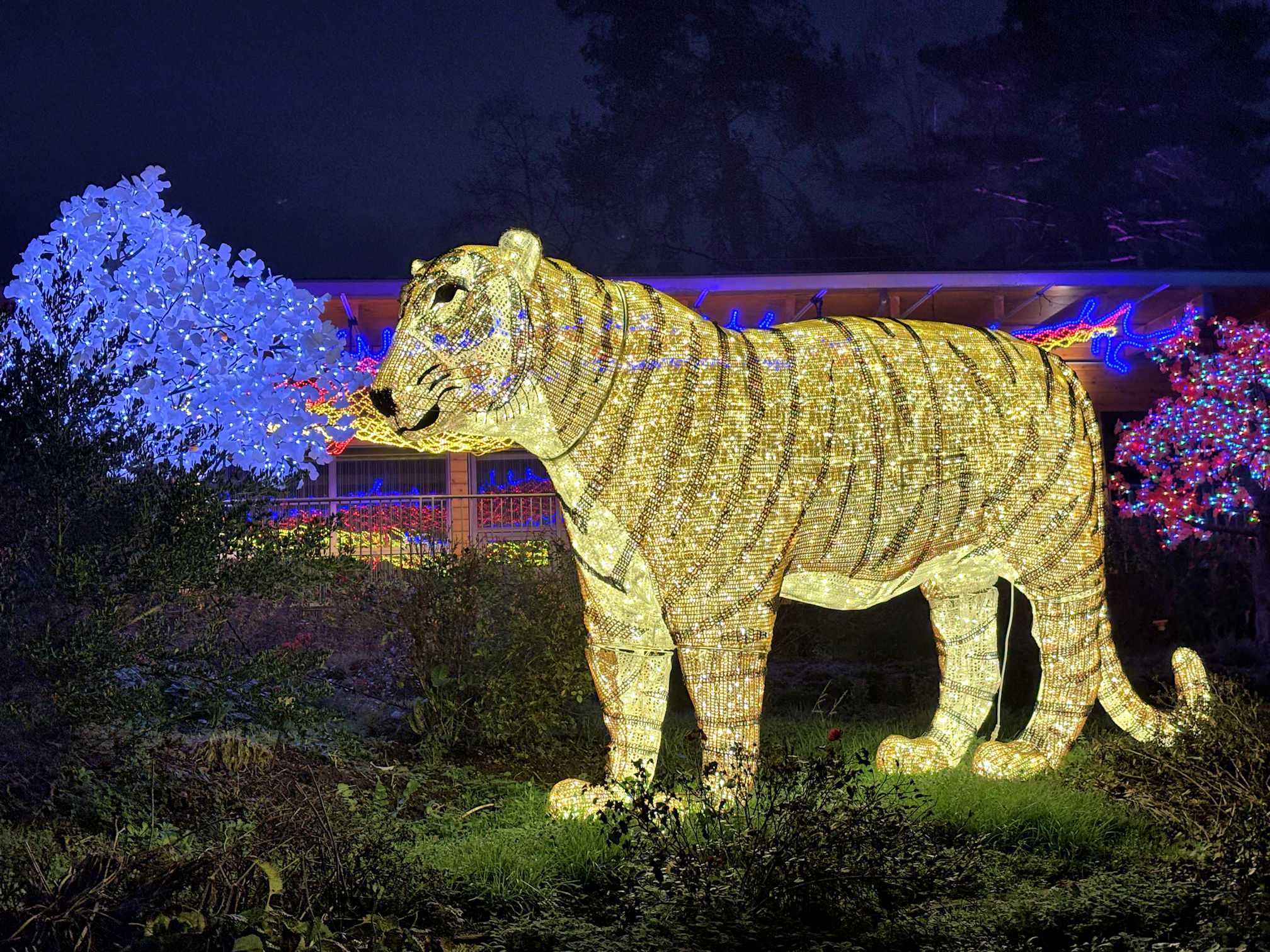 I was impressed by the variety of animal-themed lights. There were butterflies and ants, crocodiles and parrots, monkeys, lions, whales, salmon, turtles, and so many more. I wondered if there is a company that makes animal lights, or if the zoo commissioned animal decorations for this display.