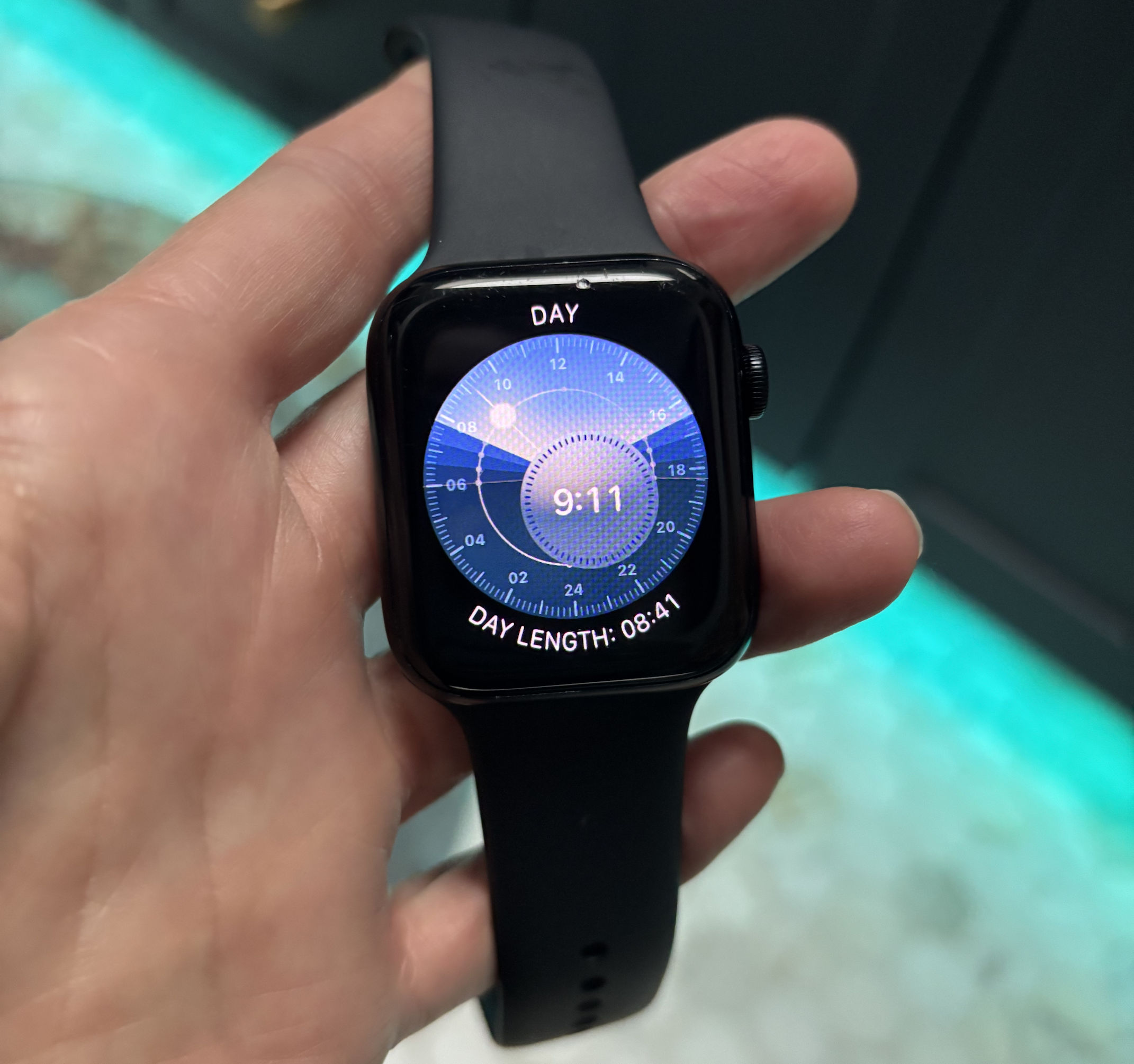 My favourite lights right now are on the watch face of my Apple watch. I like this particular watch face, that shows astronomical information. If I tap the time, it changes the screen for three seconds to show the length of the day. I managed to catch it at the shortest day of the year for us, at 8 hours and 41 minutes, surprisingly, not on December 21, but a couple of days before. If I tap the watch right now, we have already increased to 8 hours and 45 minutes. Each 60 seconds we gain is a victory! Brace yourselves my friends in the northern hemisphere: Spring is on its way!