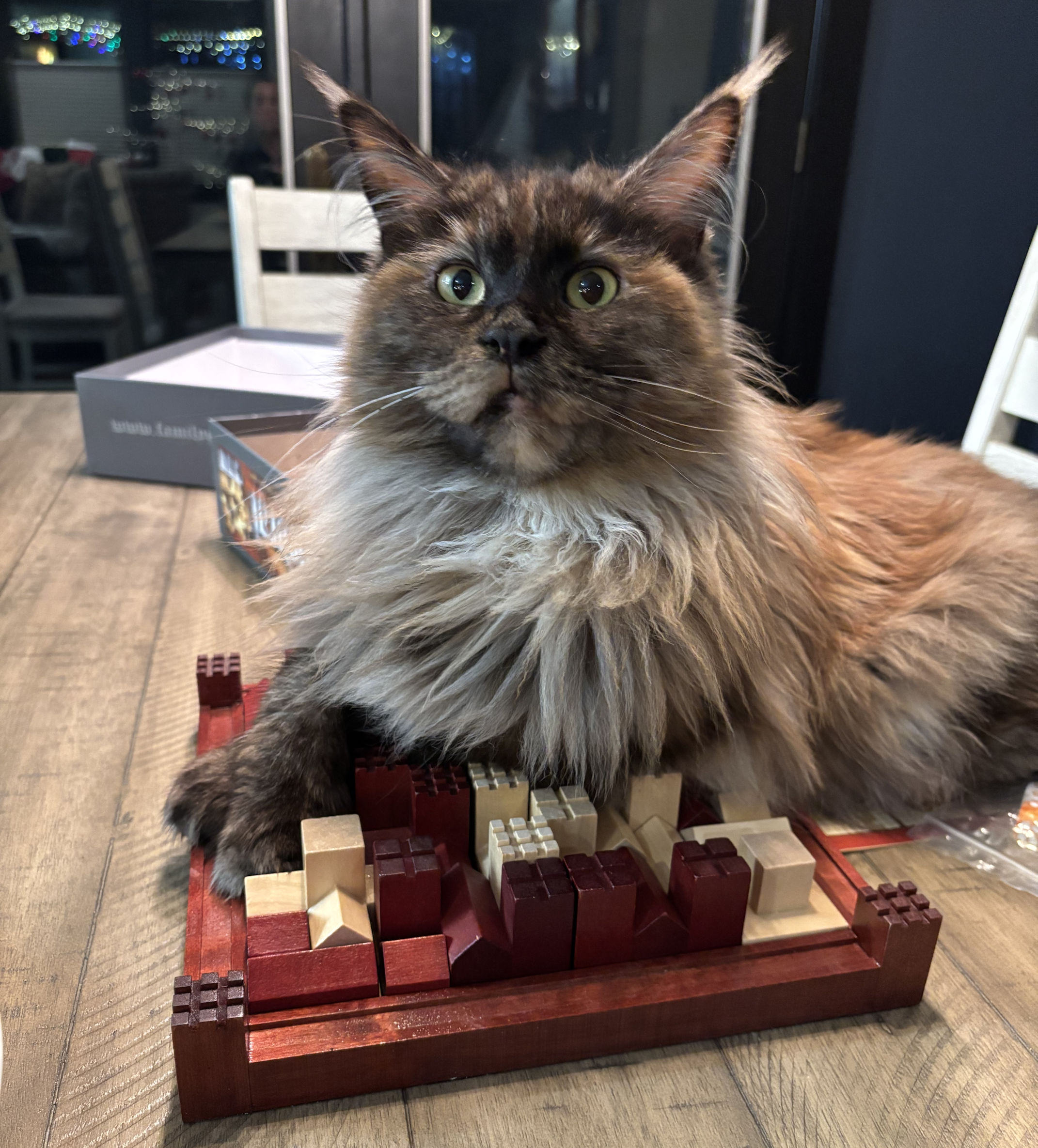 Despite its base being weighted down with several 25 pound weights from our workout area in the garage, our tree was knocked over at least three times, and half the balls have been swatted down the hall and under the couch. But so far, everything has survived. We had a quick visit from Kellen, their fiancΓ© Cameron, and their roommate, Dane, on Christmas Eve. We each opened a single present together, then swapped the rest of the gifts, and plates of goodies, and hugged each other goodbye. Our Christmas was late because we waited for Pedro’s kids to share the holiday with their mom first before they came to our house for the weekend.