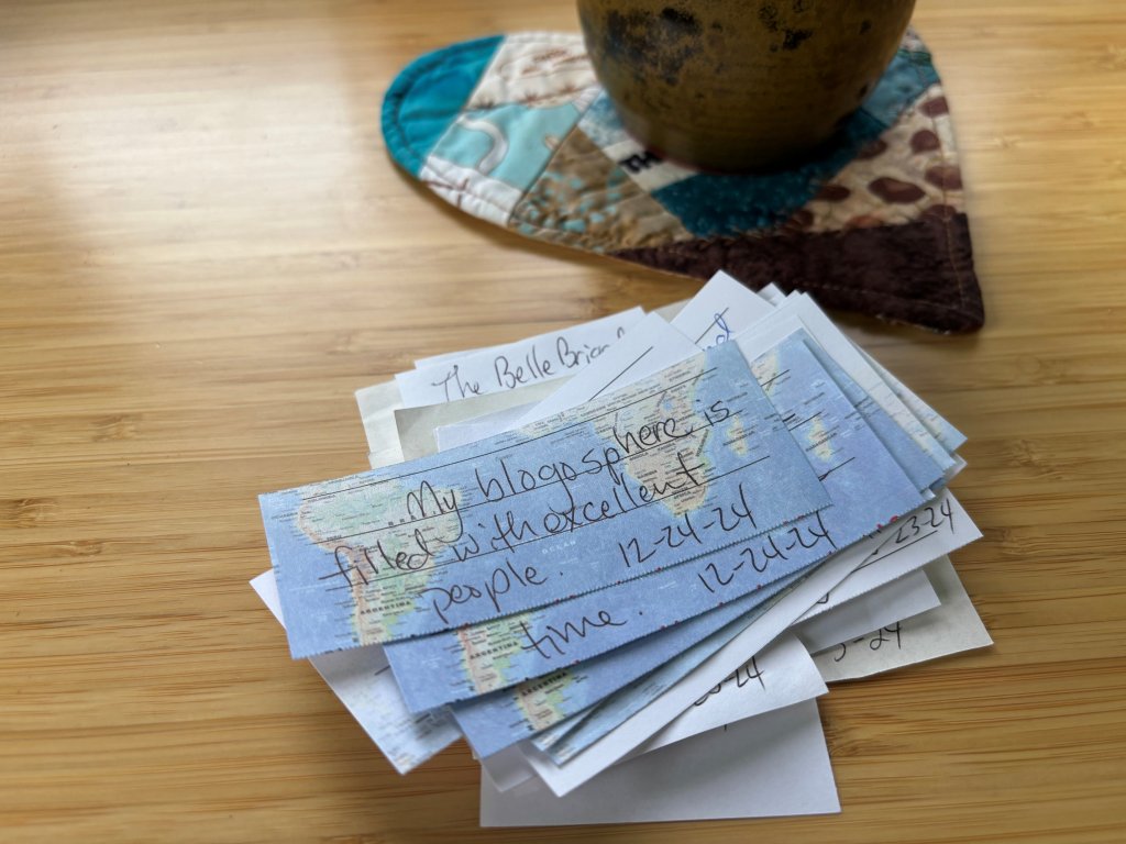 Welcome to yet another New Year tradition post, to add to all the others you have been seeing. I will re-visit my Good Things Jar. This is something I’ve been doing for years that is an attempt to get me to stop and pay attention to good stuff in my life for no other reason than to make it a habit. The plan is always to review it in the first days of January, but that doesn’t happen consistently. It’s apparently become a biennial or triennial routine, rather than an annual one. But that’s ok because the more important part is that I keep dropping in slips of paper.