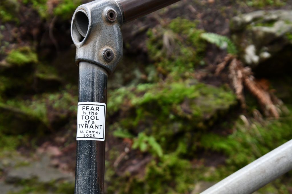 **I am grateful for the opportunity to look up and get re-acquainted with the story referenced by the sticker at Beacon Rock, which I had forgotten. Curiously, I wrote the paragraph at the top about fear BEFORE I researched “M COMEY.” Maureen Comey (daughter of former FBI Director James Comey) was fired in July 2025 from her senior attorney position at the Manhattan U.S. attorney’s office. She released an email that included these words: “If a career prosecutor can be fired without reason, fear may seep into the decisions of those who remain. Do not let that happen,” she wrote. “Fear is the tool of a tyrant, wielded to suppress independent thought. Instead of fear, let this moment fuel the fire that already burns at the heart of this place. A fire of righteous indignation at abuses of power. Of commitment to seek justice for victims. Of dedication to truth above all else.” Comey was given no reason for her dismissal. CNN reported that a White House official said her relation to the former FBI Director was “untenable.” President Dump hates Comey and apparently feels that a relative of anyone he hates should not have a position of prestige.