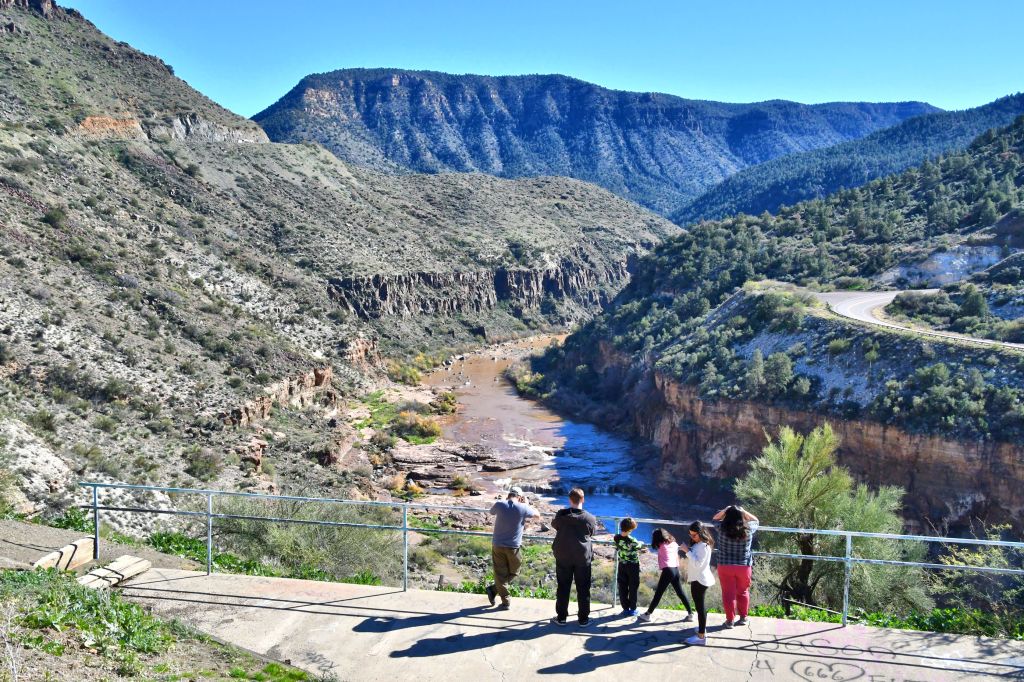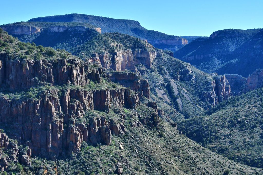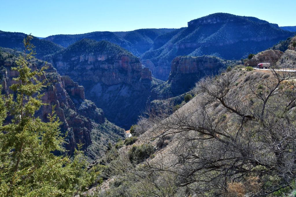 Switchbacks down, down, down. I cannot be the only one who was a road hazard – gawking out the window – but I confess I was one. To protect my fellow motorists, I slowed down dramatically. The canyon is shaped by the Upper Salt River, and apparently some people call it “Arizona’s OTHER Grand Canyon,” and you can see why they would.