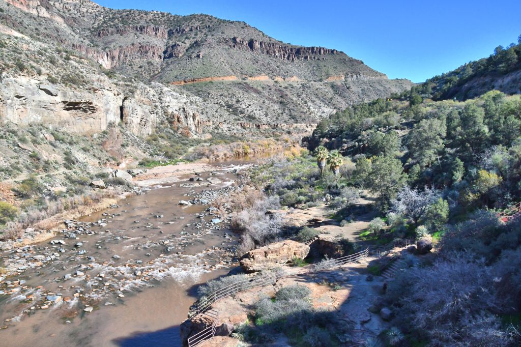 Arizona is famous for its desert scenery, and I find delight in discovering places with water. This is a robust river, and especially so last week in the days following snowfall. The extra water caused turbulence, making it deeper and browner than it would have been in a drier situation.