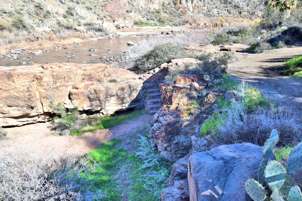 At the very bottom is more infrastructure. The Upper Salt River forms the border between the Fort Apache and the San Carlos Indian Reservations. The Natives have accommodated the large numbers of travelers who, like me, are unable to resist the pull of their gorgeous home, and want to stop and gaze. The facilities are simple and practical, meeting traveler needs in a remote desert location.