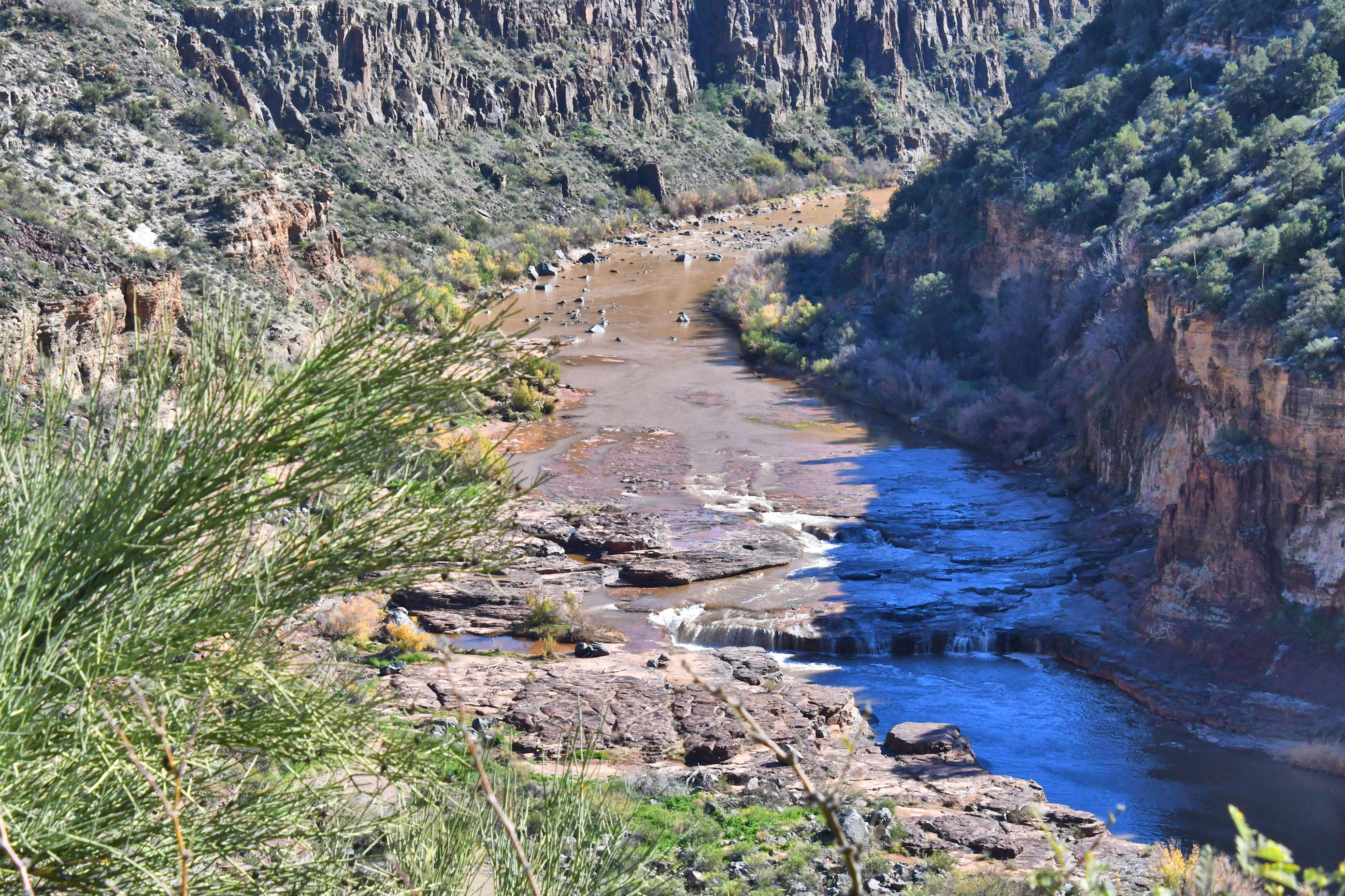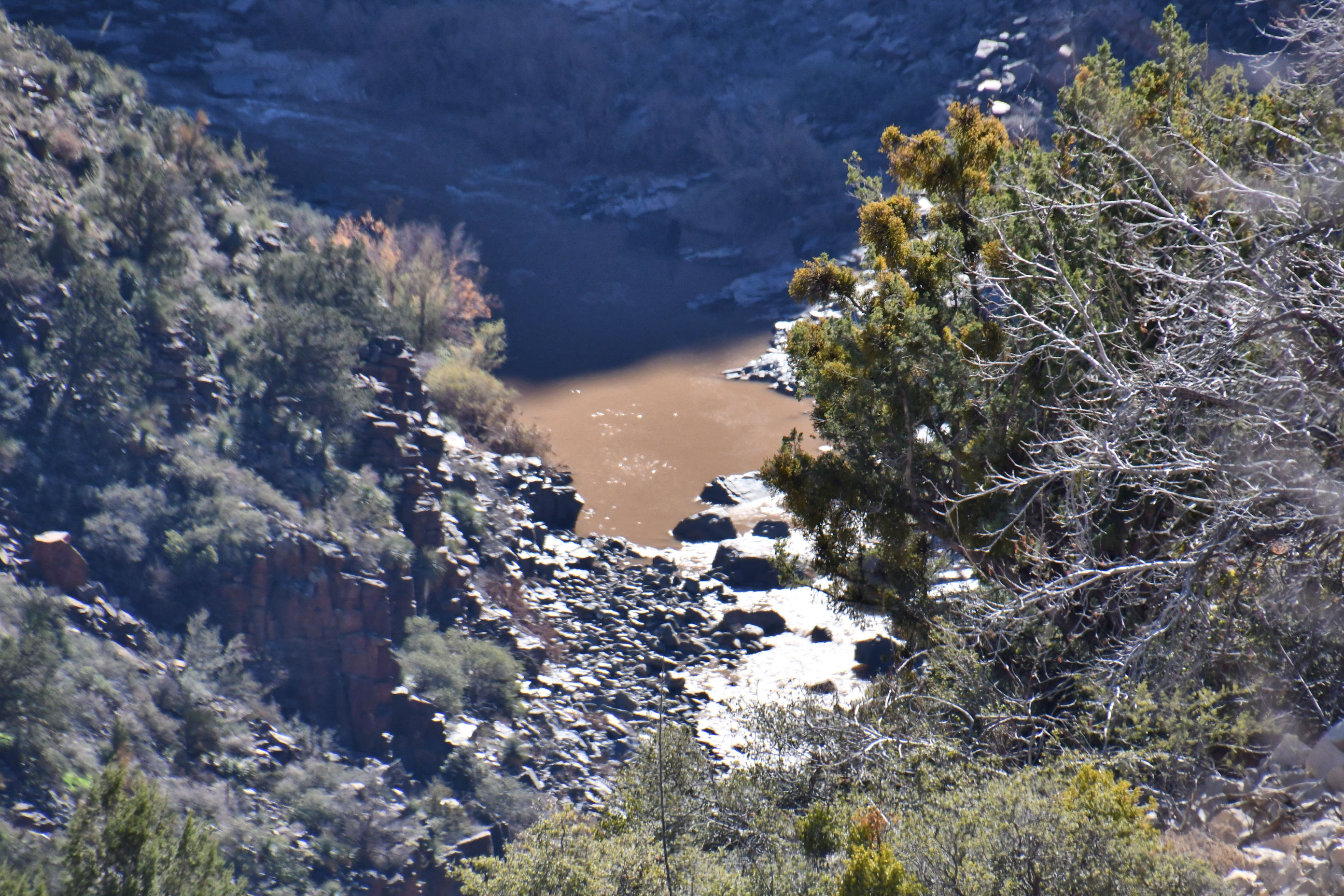 Arizona is famous for its desert scenery, and I find delight in discovering places with water. This is a robust river, and especially so last week in the days following snowfall. The extra water caused turbulence, making it deeper and browner than it would have been in a drier situation.