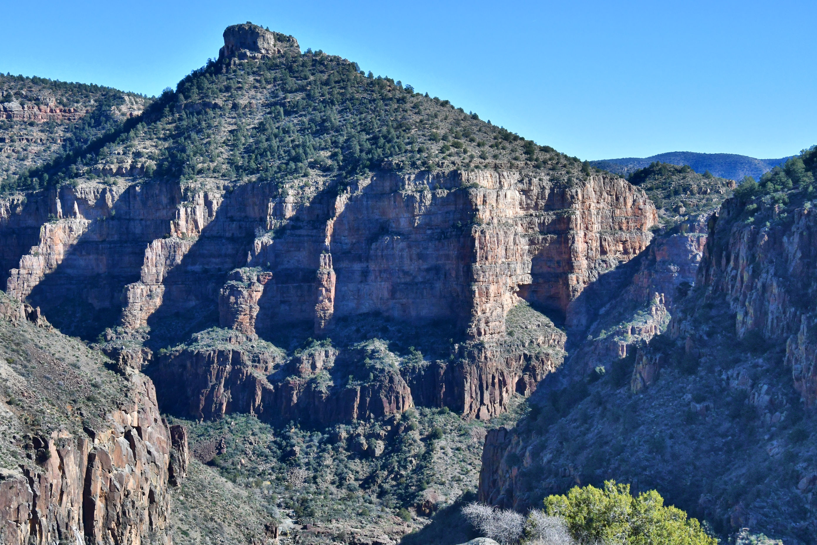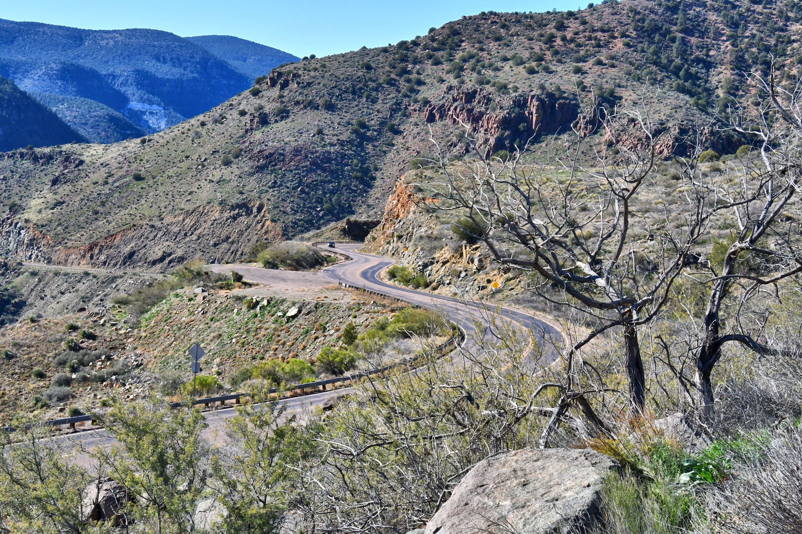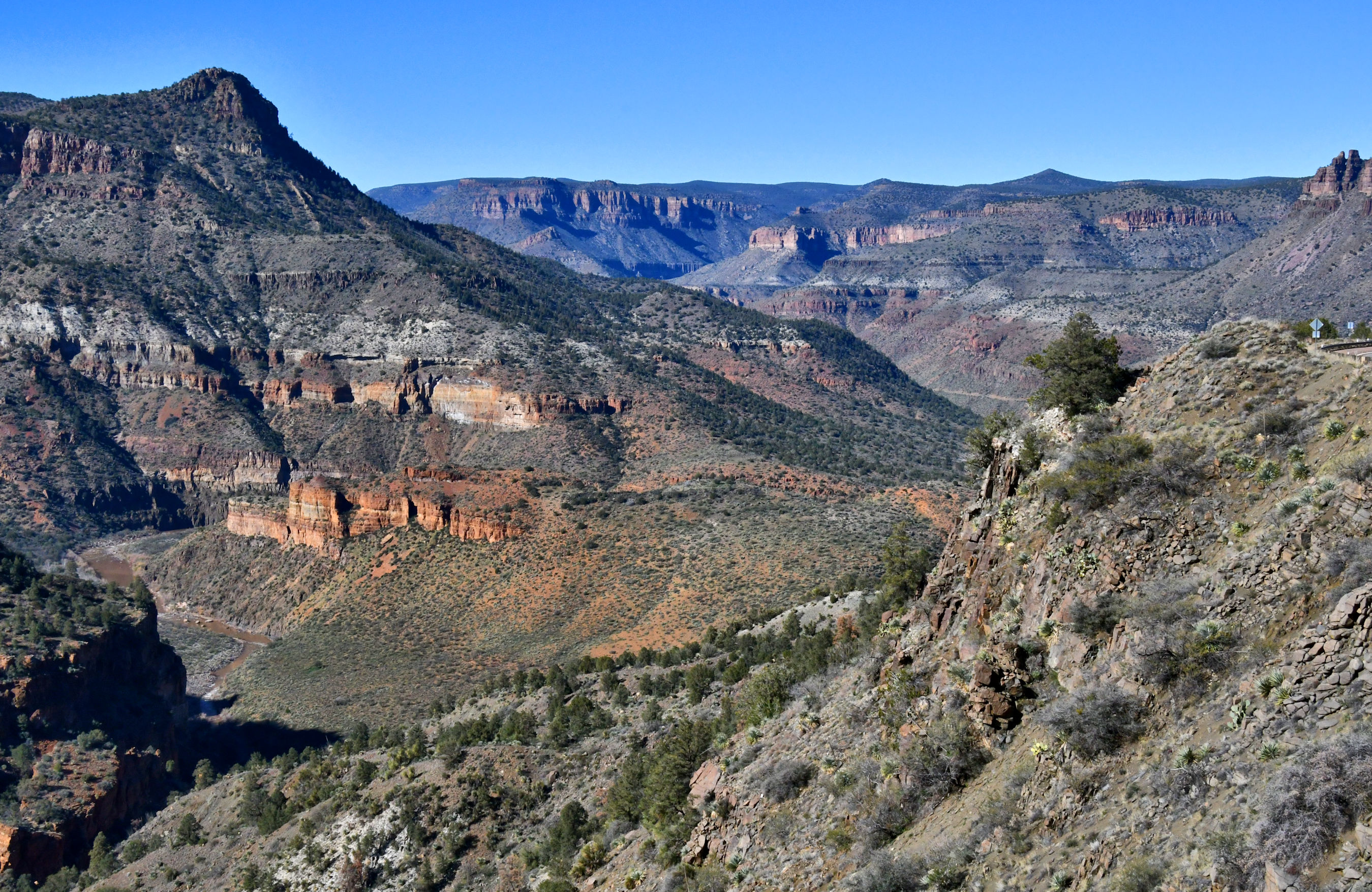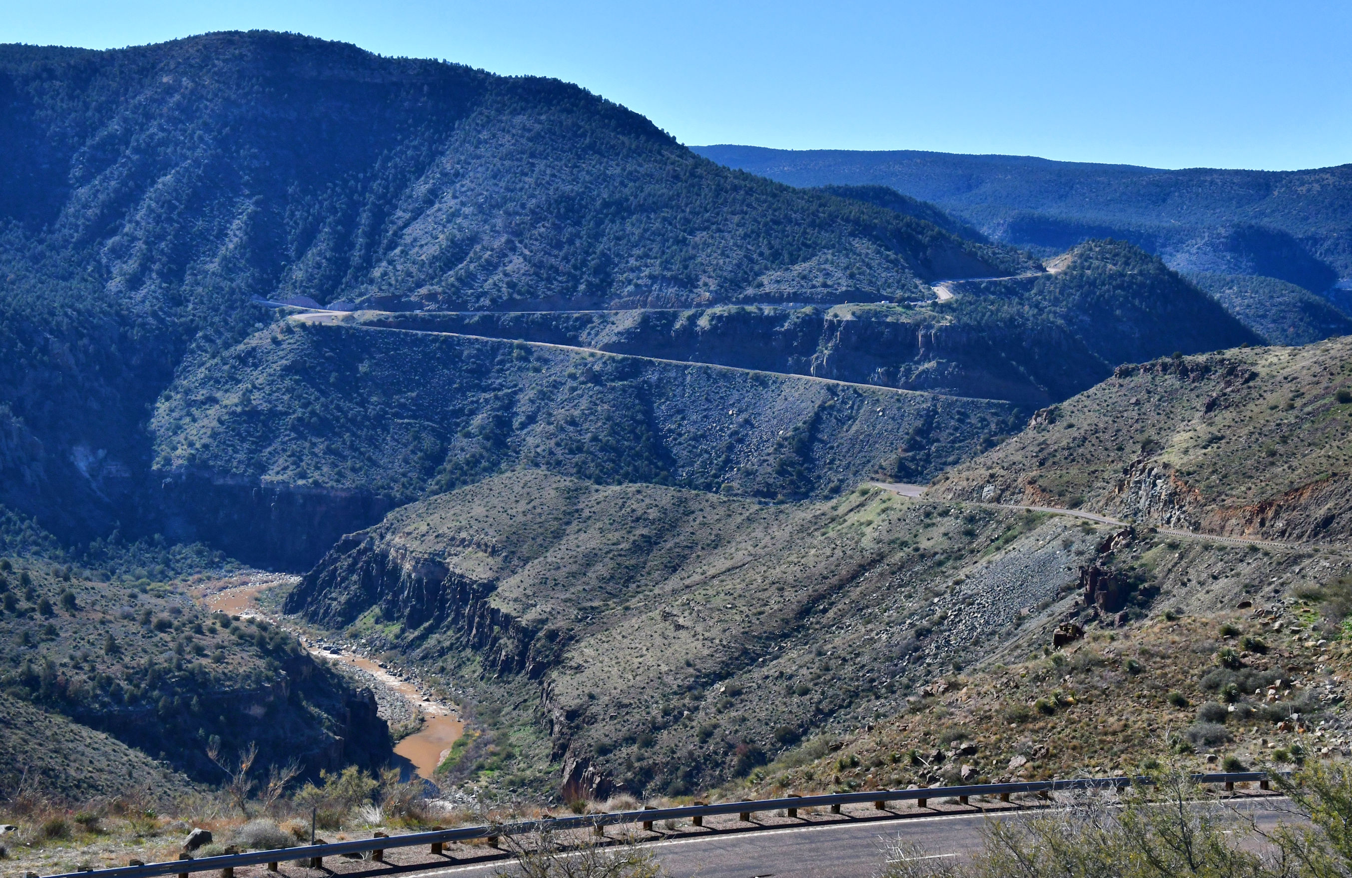 Switchbacks down, down, down. I cannot be the only one who was a road hazard – gawking out the window – but I confess I was one. To protect my fellow motorists, I slowed down dramatically. The canyon is shaped by the Upper Salt River, and apparently some people call it “Arizona’s OTHER Grand Canyon,” and you can see why they would.