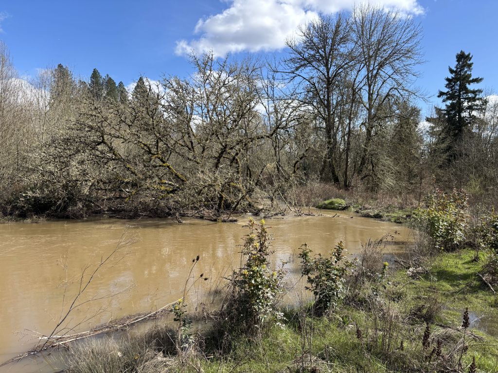 UPDATE: Just to add to the photo collection above, this shot was taken March 14, 2026 because the flooding Fanno Creek was remarkable. The angle is the same as the February 2024 one above.