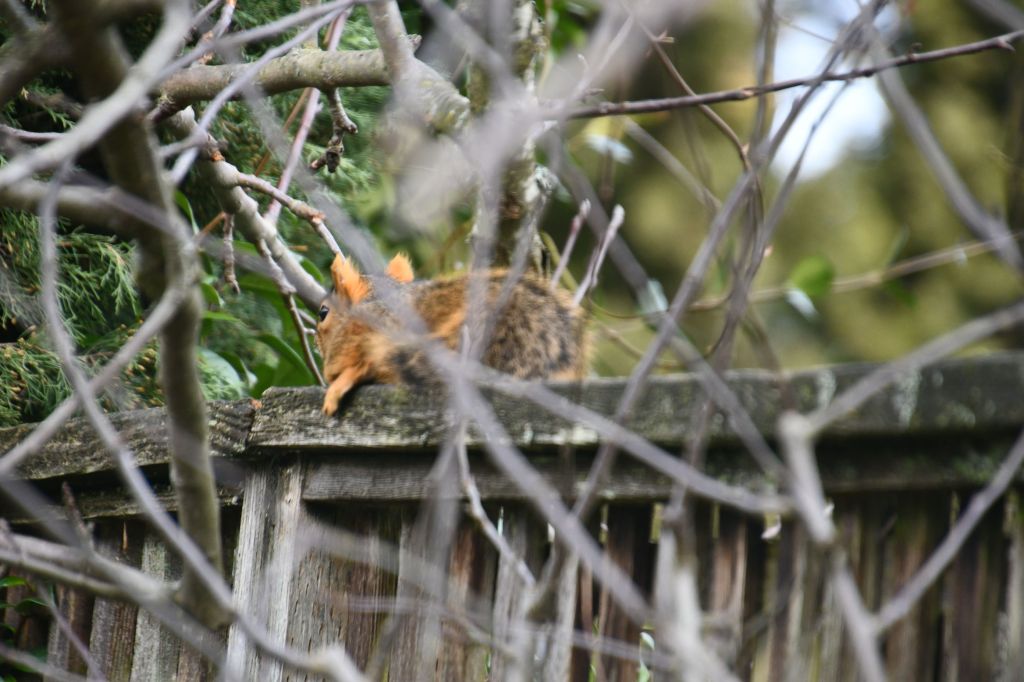 Inches away from the Towhees was this Eastern Fox squirrel. I love how the hair in their ears gets long in winter.