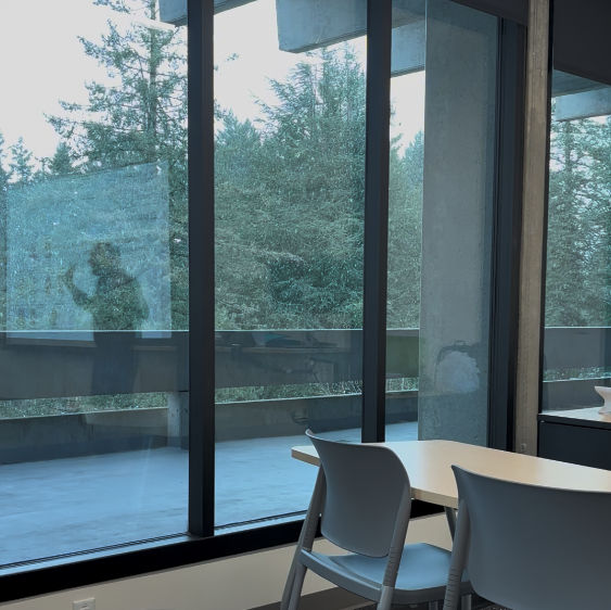 In the photo above, my classmates and I happily watched snow falling. It melted on impact, and was done falling by the time I went home again. In the image you can see a reflection of my Spanish professor, who allowed us to stop lessons for a few minutes while we all “oohed” and “ahhhed” at the scene outside.