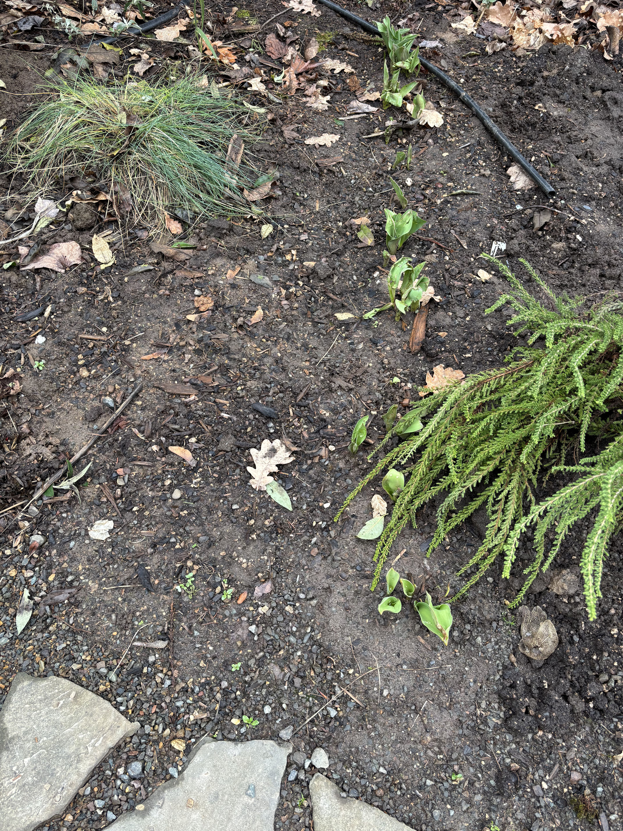 After removing the raised bed, I discovered a row of tulips trying to push up where the boards had been. I look forward to enjoying these without the bed in the way.