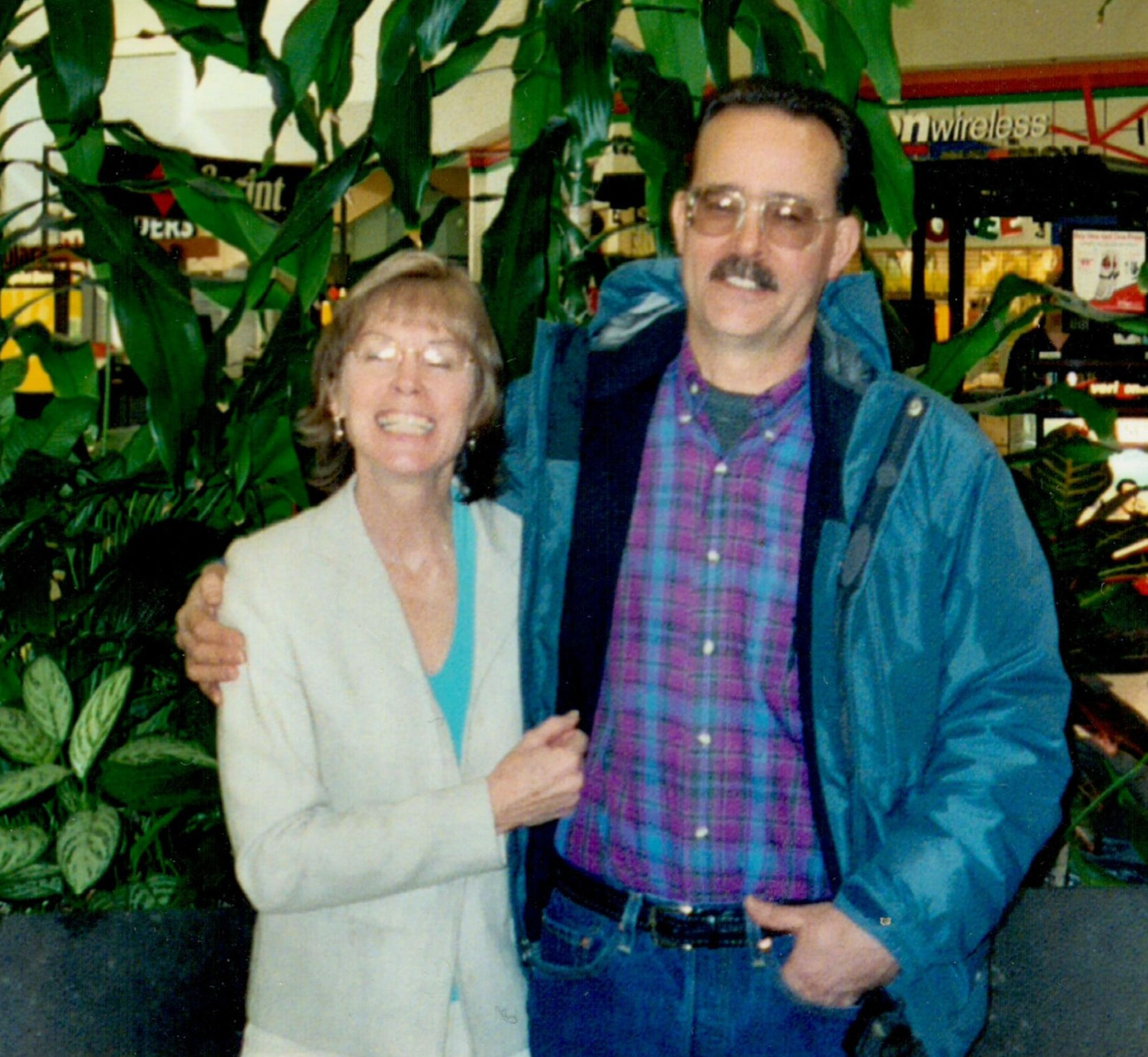 That is disappointing. But I did find a handful of photos. I’m certain there will be more, when I go through them more meticulously. The photos are all new to me, and they are wonderful I have scanned them. One at the top of this post. How special: it is Mom and her twin brother, my Uncle Mike, when they were 56 years old. I am 56 years old right now. Mom looks good, and happy. She adored her brother so much. Called him “Bruv.”