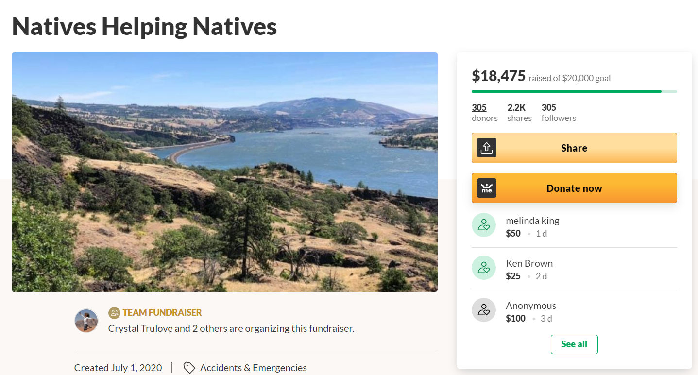 The end of May 2020, a group of Yakama fishermen I had just met asked me for help, and Warm Springs residents that she had just met asked a fellow Cherokee for help. We got approval from the Mt. Hood Cherokees Council to sponsor a fundraiser. It was outstandingly successful and we raised over $25,000 to help the two Native groups.
